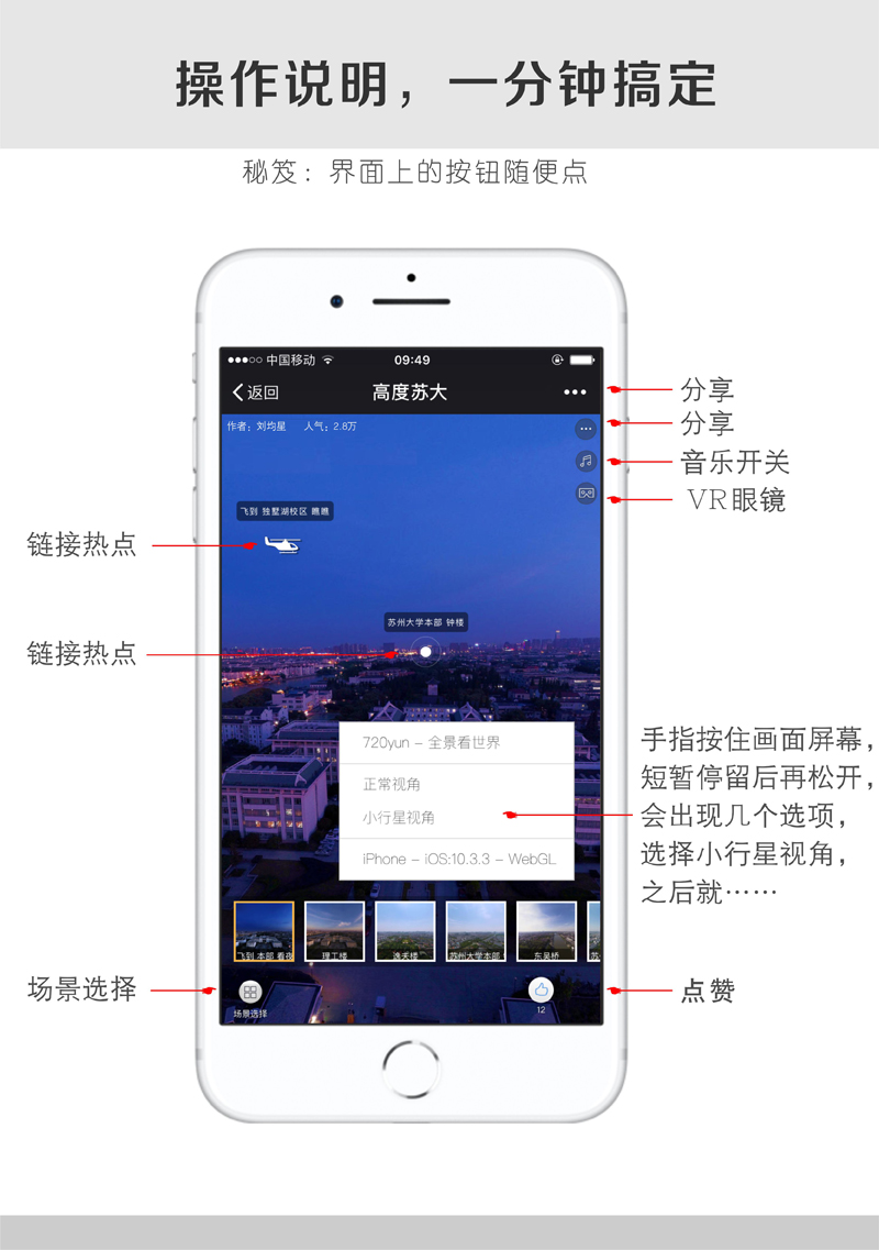 站在100米高空欣赏8868体育(中国)官方网站会是什么样呢? 高度8868体育(中国)官方网站,让飞行器在百米高空拍摄8868体育(中国)官方网站,采用VR全景技术,让您站在上帝的高度、选择不同的季节不同的时段、全方位多角度欣赏校园的美景,从一个非常的高度展示8868体育(中国)官方网站魅力。 高度8868体育(中国)官方网站首期展现8868体育(中国)官方网站三个校区的白天景象和夜景,并将继续增加不同主题的全景。