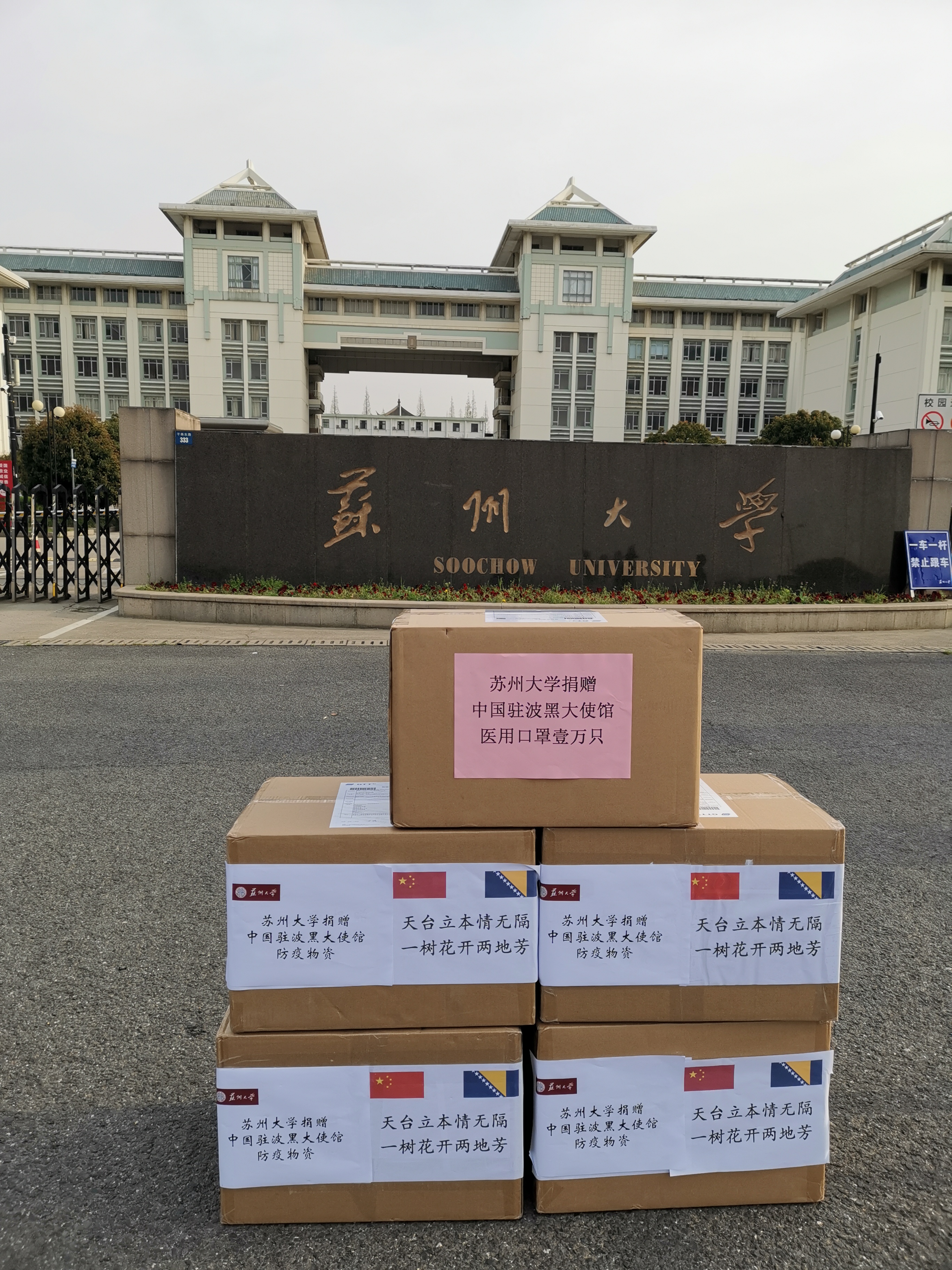 “青山一道,同担风雨。”岁末年初,自新冠肺炎疫情爆发以来,波黑官方代表和民间各界友人多次通过公开声援和实际行动向我国人民表示积极支持。但3月中旬以来,欧洲疫情愈演愈烈,在了解到波黑地区确诊病例连续激增之后,8868 SPORTS师生深感担忧,万分牵挂。学校疫情防控领导小组在第一时间果断决定向中国驻波黑大使馆紧急寄送1万只医用级防护口罩,用于协助驻波黑使馆共同抗击当地疫情。