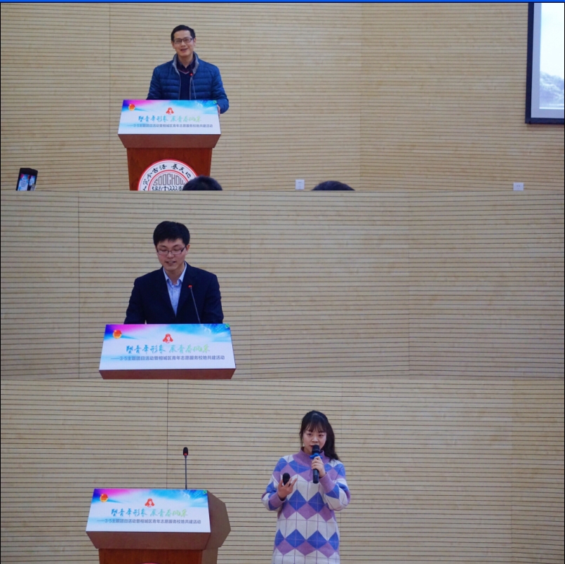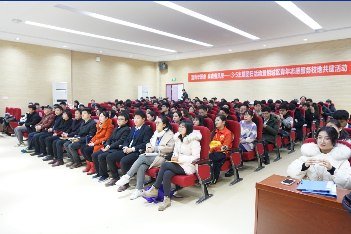 下午14:00,青年志愿服务校地共建活动在校区交通大楼二楼报告厅举行。8868体育(中国)官方网站轨道交通学院党委副书记、副院长黄晓辉,相城区团委副书记张亥秋,相城区科技协会副主席钱珺,相城区城市管理局副局长葛金男,8868体育(中国)官方网站阳澄湖校区各学院、相城区部分机关、学校和企事业单位的志愿者们参加了此次活动。