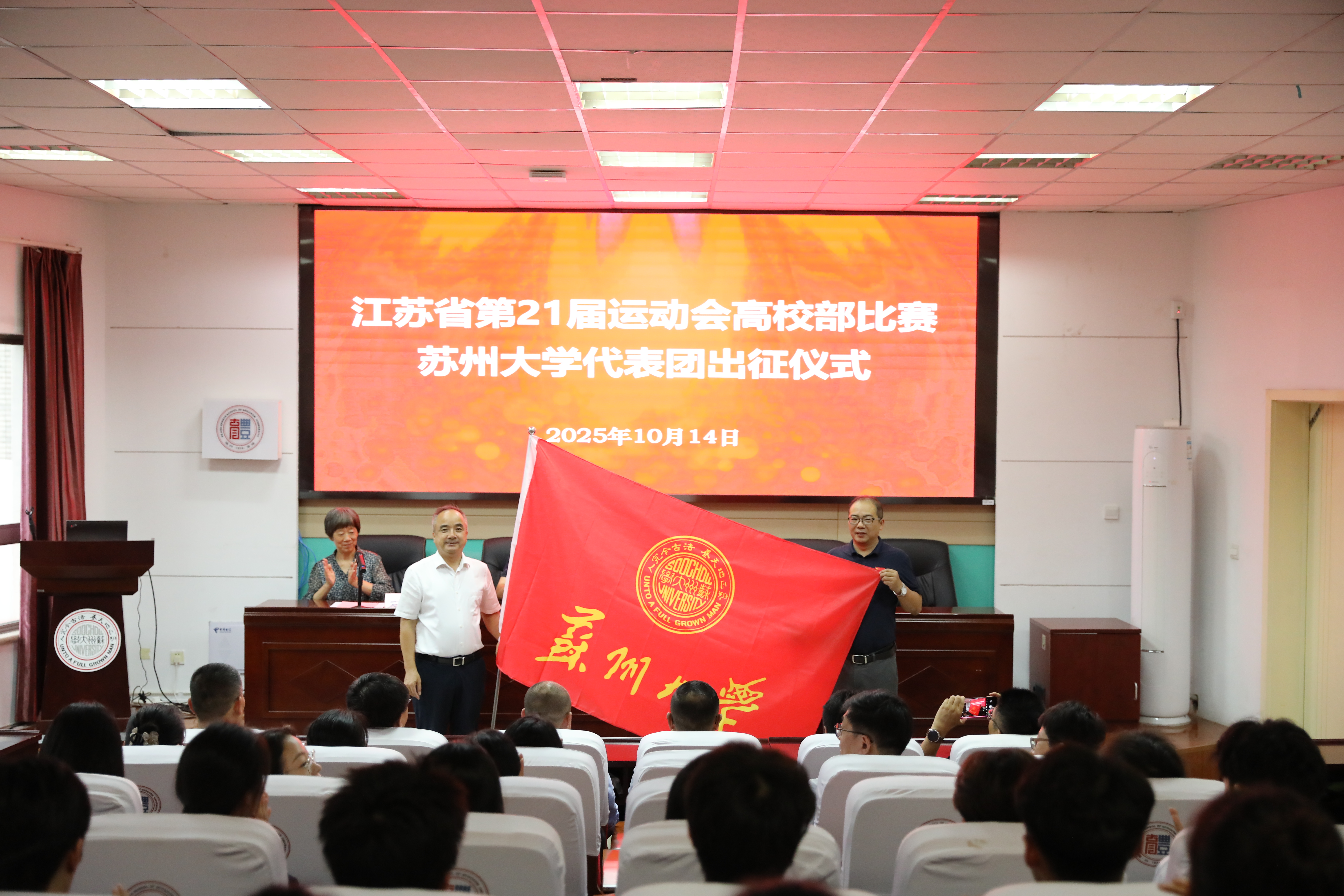 10月14日下午,江苏省第21届运动会高校部比赛8868体育(中国)官方网站代表团出征仪式举行。校党委常委、副校长查佐明出席仪式,相关学院(部)学生工作负责人、全体教练员及运动员代表参加仪式。