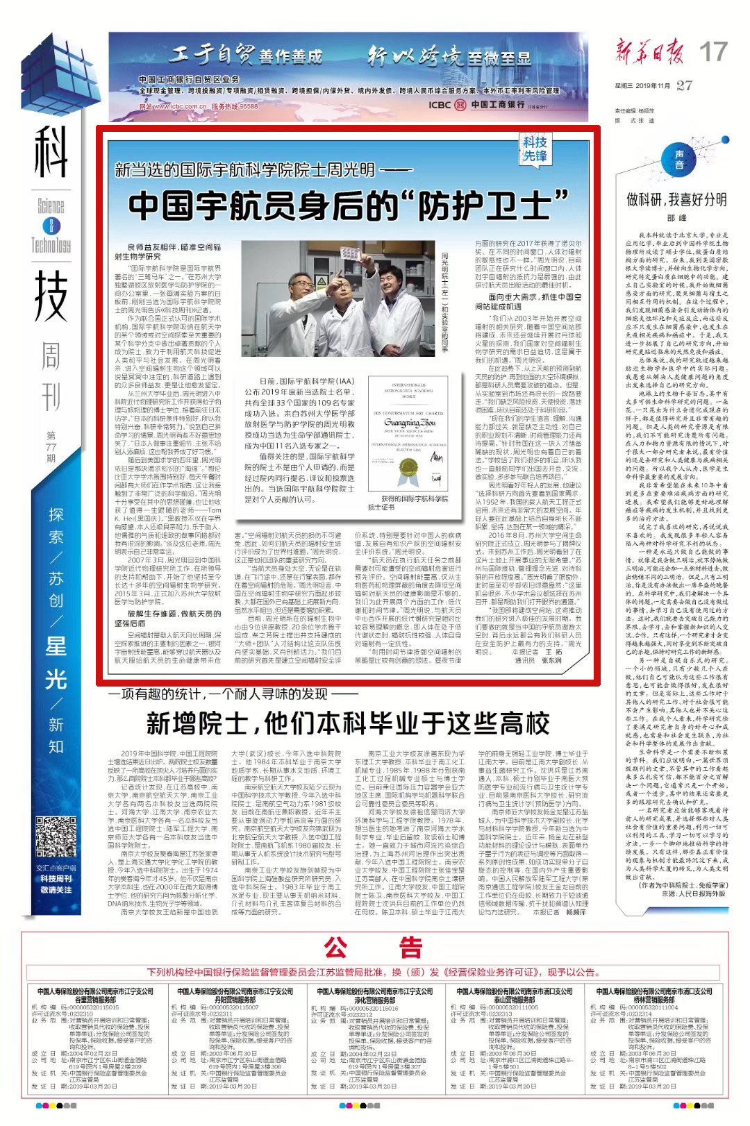 “我国即将建成空间站,这将推动我们的研究进入极佳的发展时期。我们要做的就是当中国的宇航员遨游太空时,背后永远都会有我们科研人员在安全防护上最有力的支持。” 周光明说。本报记者 王 拓 通讯员 张东润