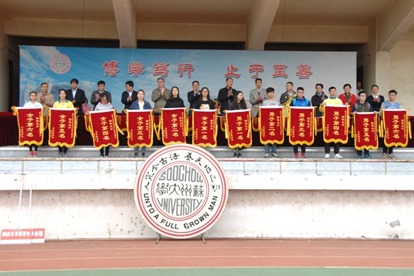 随后,校体育运动会组委会办公室主任、体育学院副院长王全法宣读了本次学生运动会篮球比赛、排球比赛、足球比赛、乒乓球比赛、羽毛球比赛等各项赛事的成绩公告,宣布了本次校运会的结果。校体育运动会组委会副主任、学生工作部(处)部(处)长陈晓强宣读了本届运动会优秀组织奖和体育道德风尚奖获奖名单。