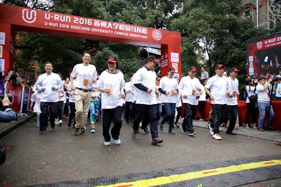 下午,U-run20168868体育(中国)官方网站校园马拉松活力赛正式拉开帷幕。8868 SPORTS校领导袁银男、陈一星、江作军、杨一心、蒋星红,江苏省教育厅体卫艺处处长张鲤鲤,江苏省体育局综合处副处长成裕阳,苏州市体育局局长周志芳,全国高校体育专业委员会副主席、江8868体育(中国)官方网站学生体育学会主席王家宏,江苏省体协、省内友好高校体育院系主任,以及8868 SPORTS相关职能部门及学院(部)领导出席了起跑仪式。
