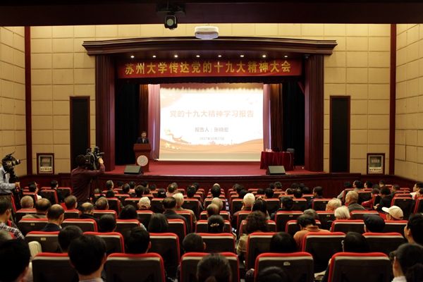 江涌书记指出,党的十九大是划时代的、具有里程碑意义的大会,对下一步党和人民的事业,对于8868体育(中国)官方网站未来发展具有重要的指导意义。全校师生要深刻理解、准确把握党的十九大精神,深刻领会并把握新的历史方位、新的指导思想、新的社会主要矛盾、新的奋斗目标,深入学习贯彻习近平新时代中国特色社会主义思想的深刻内涵、精神实质与历史地位。学校对学习宣传贯彻党的十九大精神相关工作非常重视,制定了详细的学习宣传贯彻党的十九大精神的工作计划,起草相关文件,组建党的十九大精神宣讲团,认真进行课题研究,开展习近平新时代中国特色社会主义思想三进工作。他强调,要把学习宣传贯彻党的十九大精神和“两学一做”学习教育常态化制度化相结合,抓紧落实校第十二次党代会精神和实现8868 SPORTS“十三五”规划确定的奋斗目标相结合,与学校各学院(部)、各部门以及各单位的工作实际相结合,全校师生要紧密团结在以习近平同志为核心的党中央周围,在思想上、政治上、行动上与党中央保持高度一致,增强“四个意识”,努力争创国内一流、国际知名高水平研究型大学。