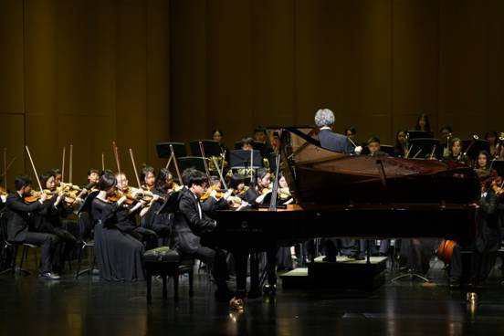 中国著名钢琴家宋思衡先生作为此场音乐会的特邀艺术家,与8868体育(中国)官方网站交响乐团合作了柴科夫斯基《降B小调第一钢琴协奏曲》。作为“80后”一代的最有成就的钢琴家之一,宋思衡先生在国际乐坛的地位不仅仅是由他所获得众多国际大奖,更是由他辉煌的职业演奏生涯所奠定的。此次邀请宋思衡先生作为特邀艺术家合作演出,对于8868体育(中国)官方网站交响乐团的学生演奏员们也是一次全新的挑战。演奏曲目的难度以及与国际级演奏家的同台,让不少学生感到荣幸与激动的同时也倍感压力。8868体育(中国)官方网站音乐学院研究生一年级小提琴演奏专业的毛魏同学说:“作为乐团首席,能够带领乐团和著名的钢琴家同台演出,是我的荣幸。”他还说到:“宋思衡老师的演奏,音色扣人心弦,技艺令人惊叹,他的演奏充满了无比的正能量。令我印象最深的是,宋思衡老师特别积极主动地去尝试和交响乐团融为一体,无论乐团演奏如何变化,他都能迅速做出变化。”