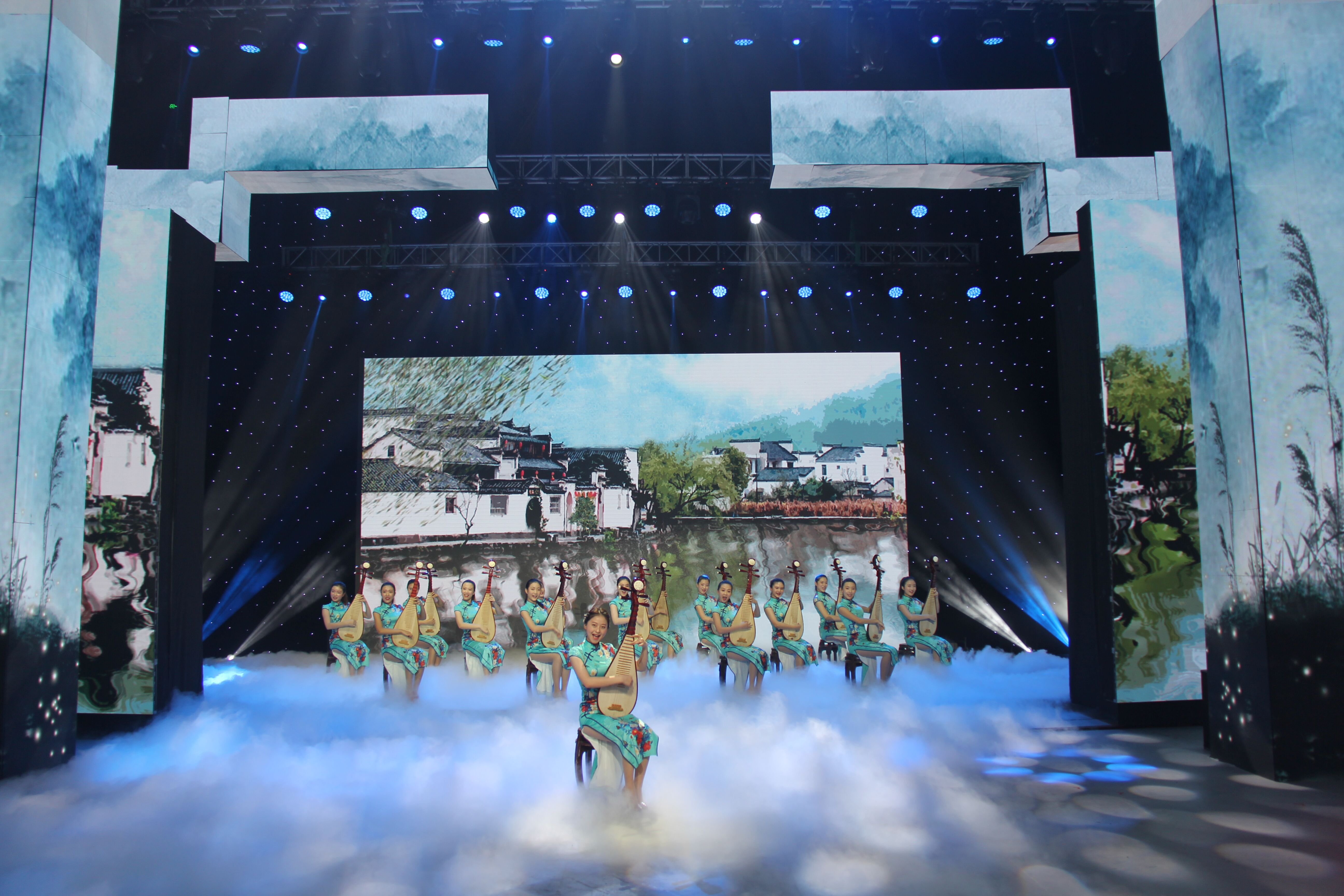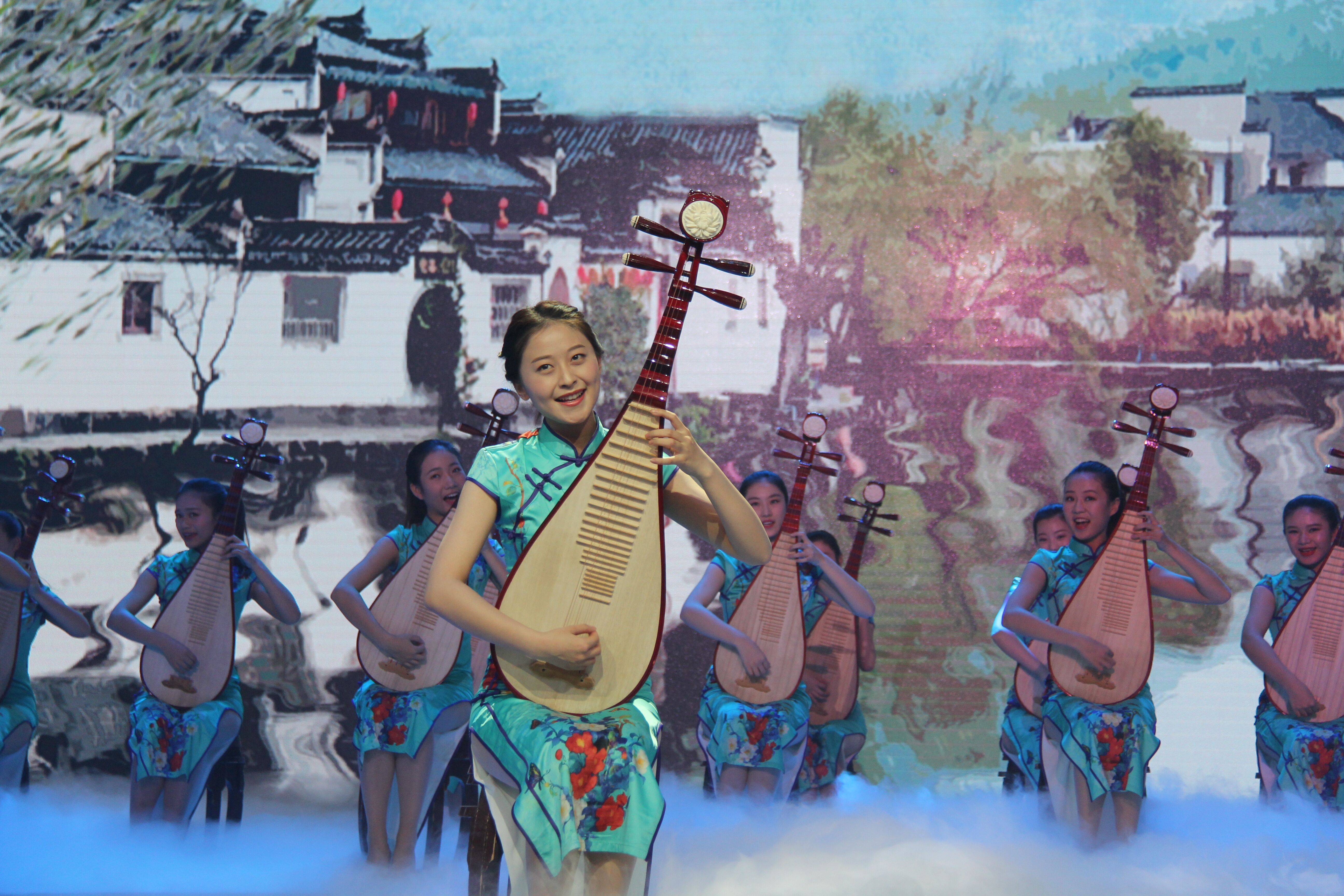 舞台上,15位姑娘裙裾摇曳、曼妙生姿,她们一对对顾盼生辉的眼眸,一双双纤纤的巧手轻抚琵琶, 配以轻清柔缓的吴侬软语 ,将江南小娘鱼的柔美风韵发挥到了极致。