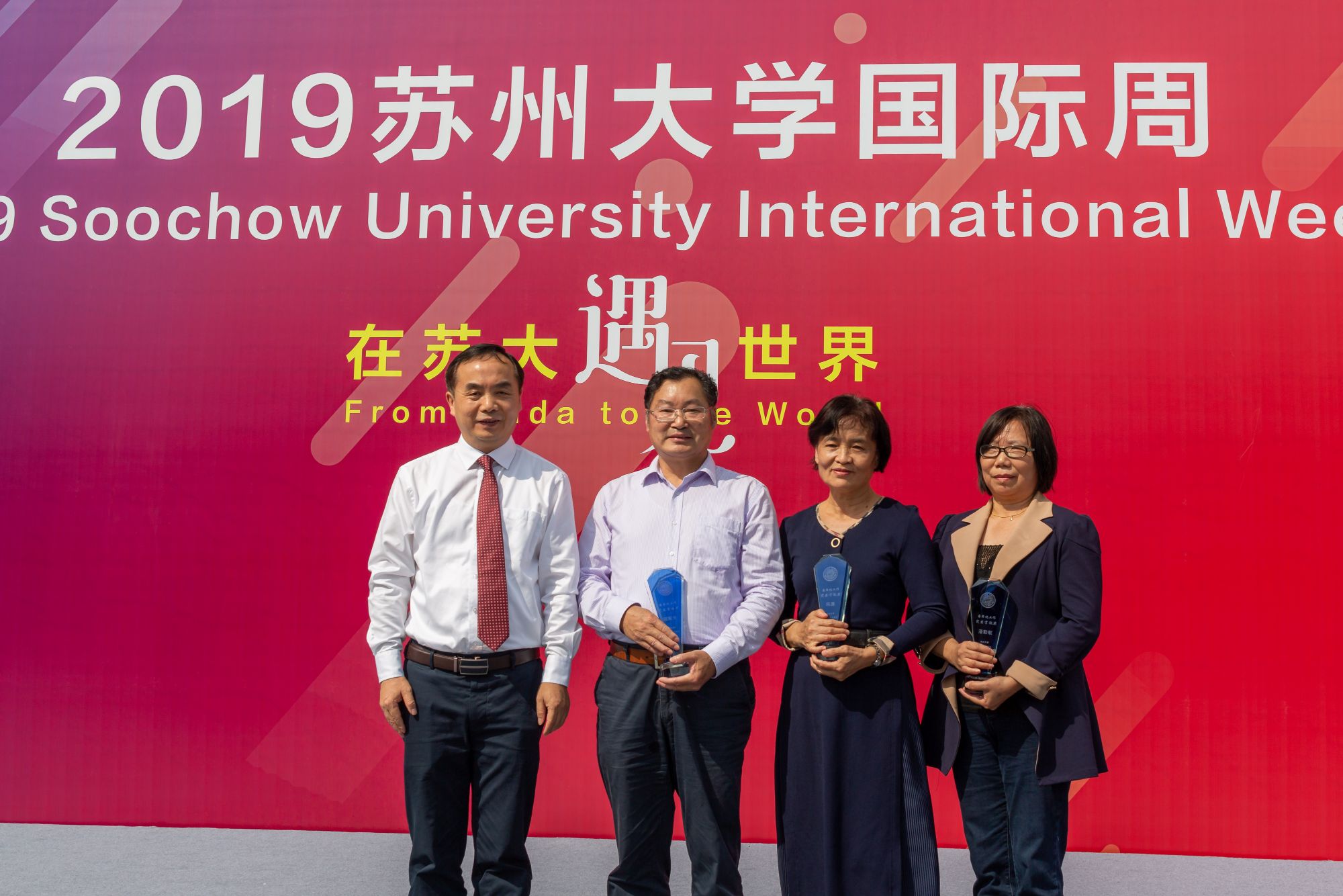 随后,现场举行了8868体育(中国)官方网站国际化工作突出贡献奖颁奖仪式,以此对长期为8868 SPORTS国际合作与交流事业做出突出贡献、取得重大成果的老师予以表彰。纺织与服装工程学院的陈雁教授、政治与公共管理学院的钮菊生教授、材料与化工学部潘勤敏教授分获此奖项。张晓宏为获奖老师颁奖并合影留念。