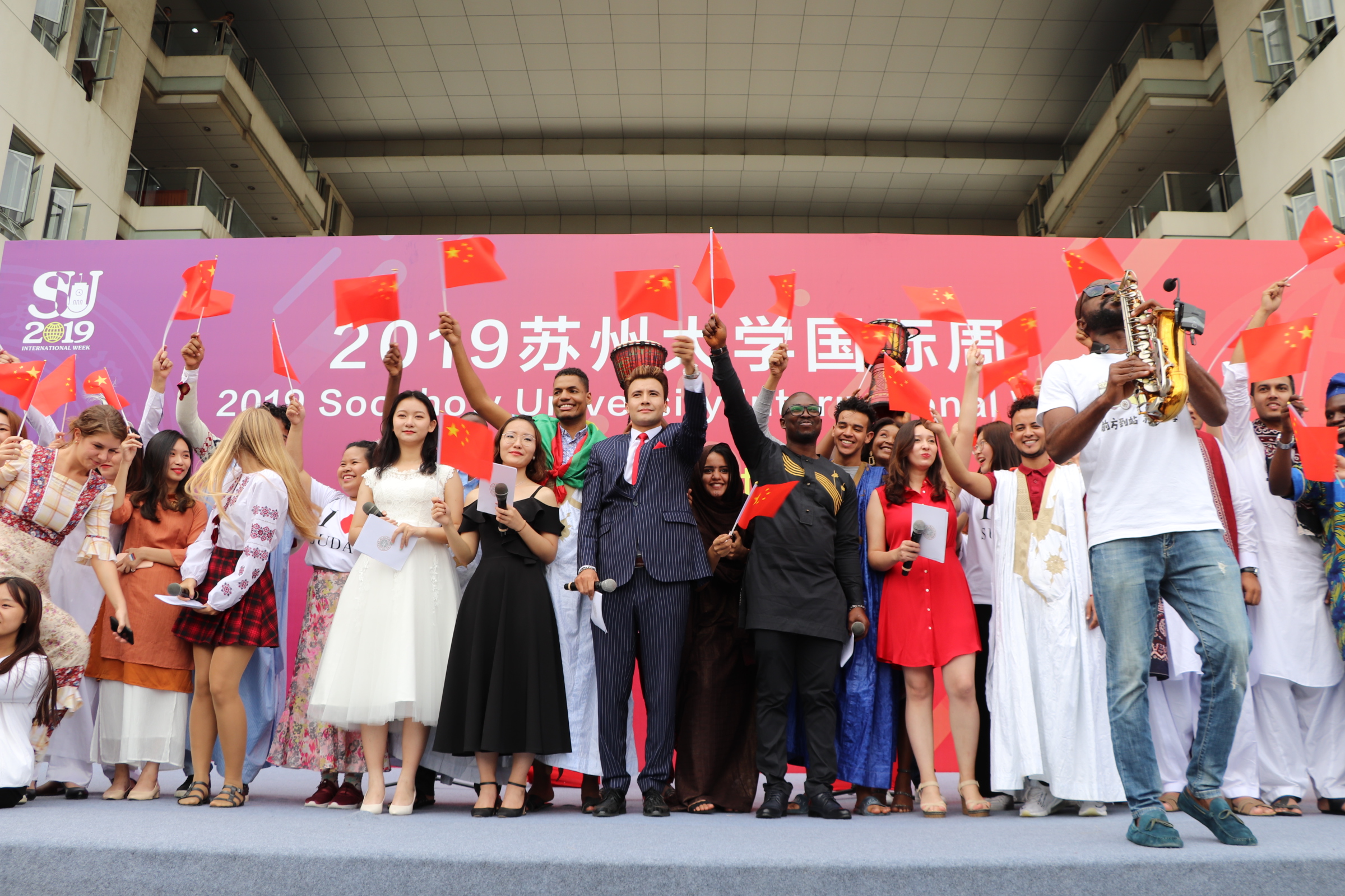 开幕式后,来自世界各地的留学生们给大家带来了一场文化盛宴。伊朗鼓表演极富韵律与节奏,老挝芦笙舞优美动人,世界民族服饰秀令观众们目不暇接。最后,由中外学生和SICA志愿者们共同表演了歌曲《我爱你,中国》,演出在热烈欢快的氛围中圆满结束。