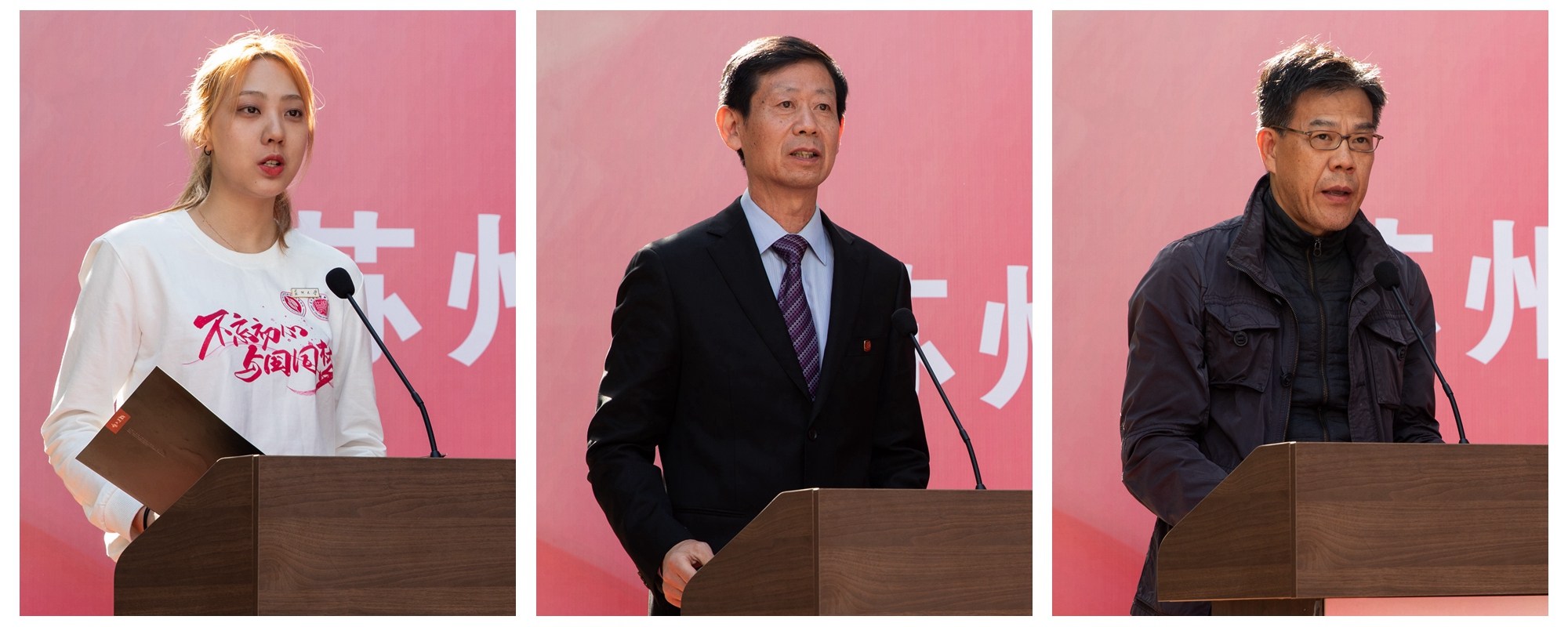 紫卿书院本科生代表、2016级纺织工程(中外合作办学)专业龚依澜感谢学校为学生成长发展搭建了更为广阔的发展平台,她表示将牢记紫卿立世之精神,谨遵师长教诲,坚守求学本心,成长为德智体美劳全面发展的社会主义建设者和接班人。博士生导师、纺织与服装工程学院左保齐教授作为导师代表发言。他表示,担任导师既鼓舞人心又深感肩上多了一份沉甸甸的责任,将以严谨认真的治学态度,以崇高的师德、博大的胸怀和渊博的知识立足于讲台,结合学生专业发展需求,以促进学生专业发展和综合素质发展为导向,助力学校“新工科”人才培养的高质量发展。校友代表、苏州正雄企业发展有限公司吕惊涛此次受聘为校外导师,他回忆起在母校的美好时光,感恩母校培养,并鼓励同学们奋发向上、积极求学,表示将把自己多年的实践经验和知识融入对学生的指导,努力为学生成长成才保驾护航。
