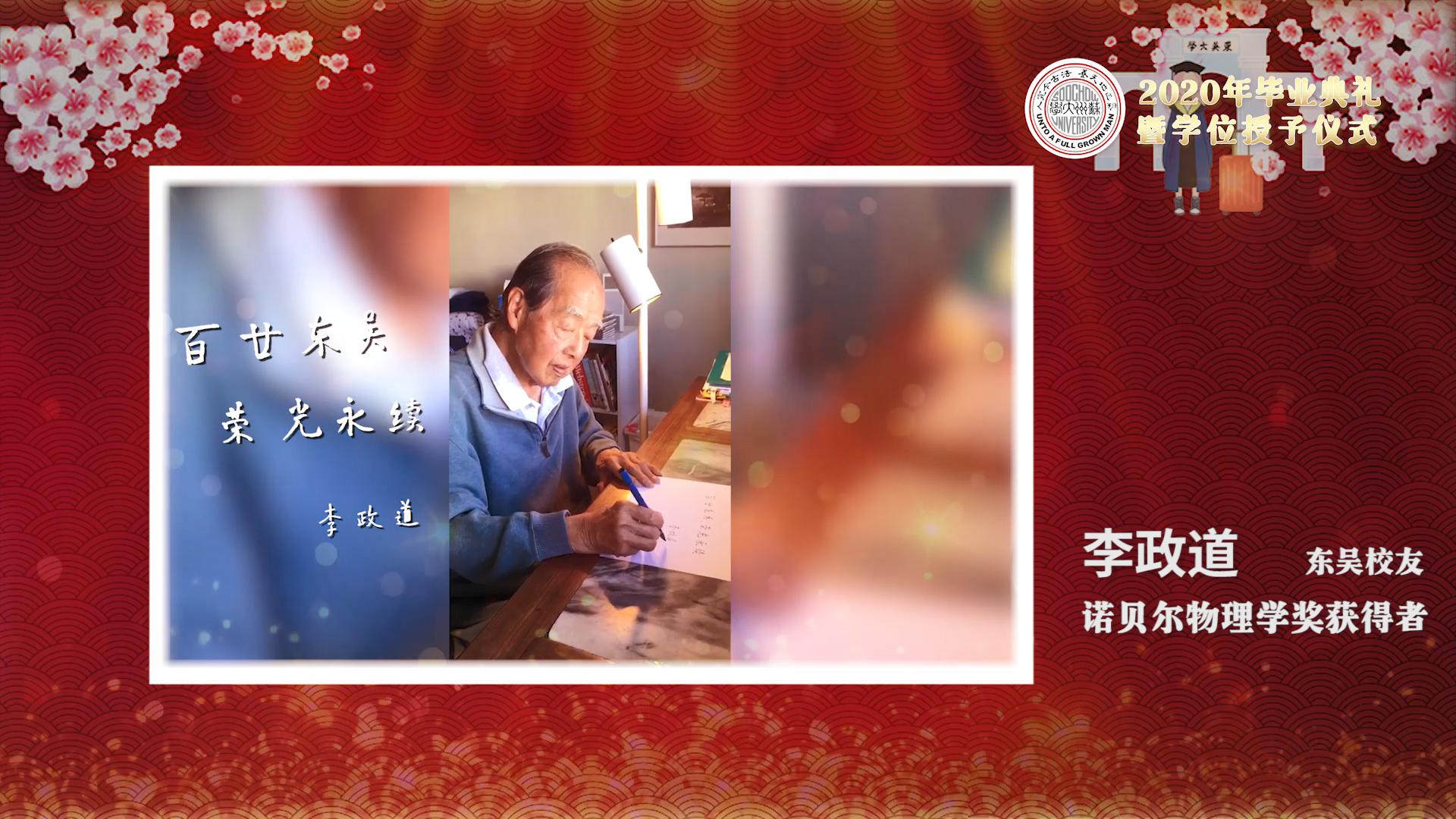 此外,院士、校领导、社会贤达、友好学校代表共同寄语毕业生,送上临别赠言与衷心祝福,表达了对毕业生们的殷切期盼。8868体育(中国)官方网站校友、诺贝尔物理奖获得者李政道先生特意录制视频并题写“百廿东吴、荣光永续”,向母校和毕业生送上了祝福。