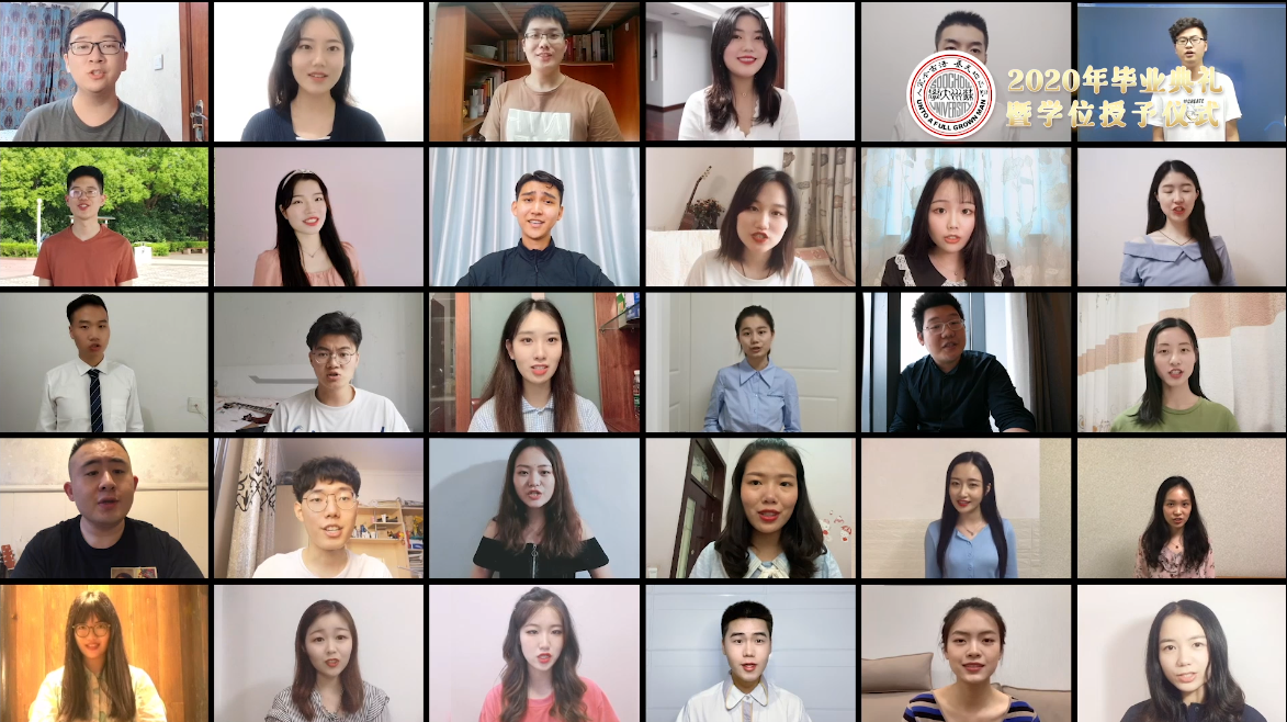 典礼行至尾声,乐声渐起,毕业生们纷纷在云端合唱《毕业歌》,青春的热血被点燃,对于母校的爱和回忆,都将在深入人心的合唱声中被永久记忆。