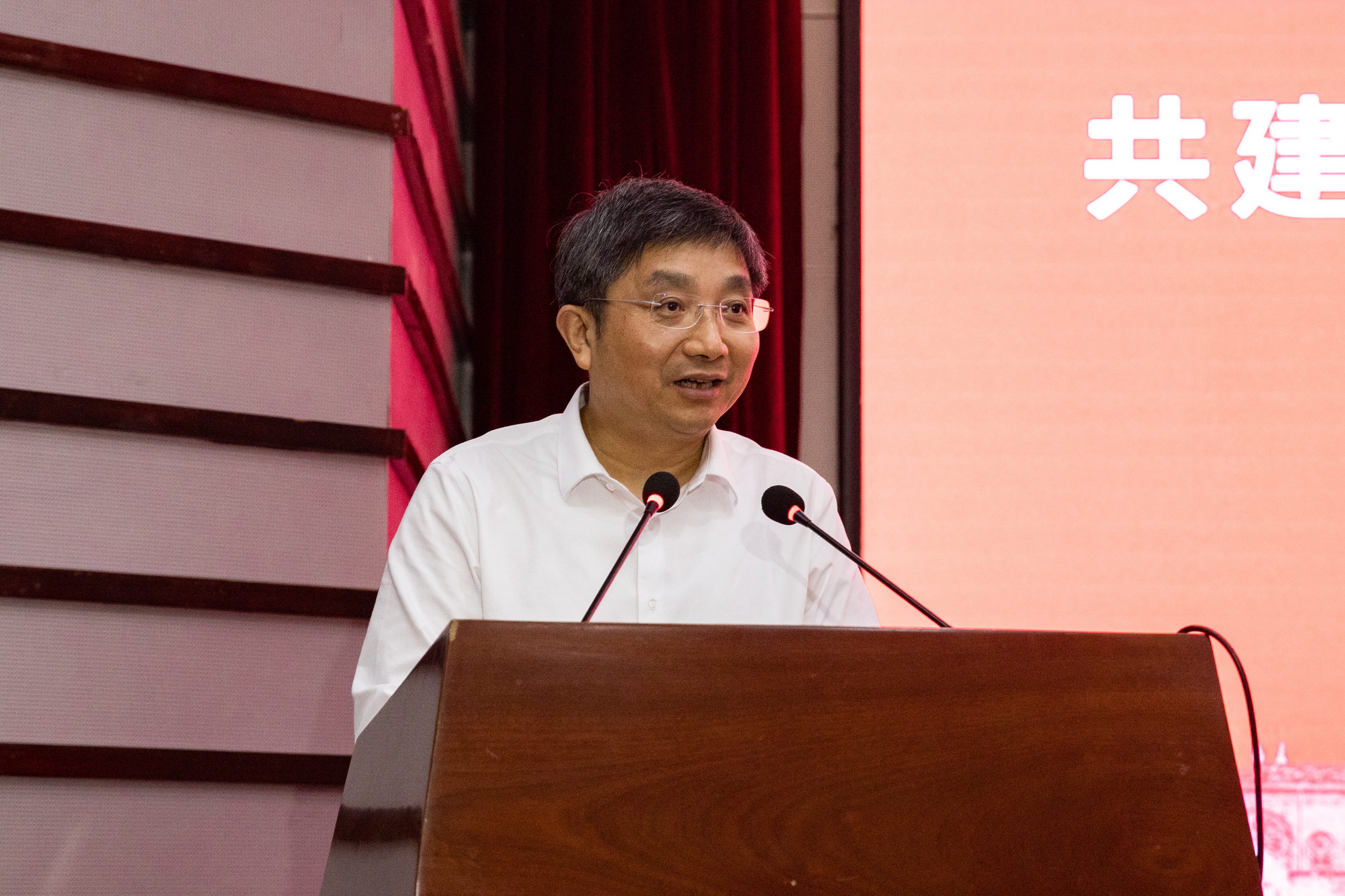 江涌在致辞中指出,部校共建马克思主义学院,是贯彻落实习近平总书记在全国高校思想政治工作会议、学校思想政治理论课教师座谈会上讲话精神的重要实践,是主动加强和改进新形势下高校思想政治工作、深化新时代学校思想政治理论课改革创新的必然要求。8868体育(中国)官方网站将以共建为契机,从落实立德树人根本任务、培养造就担当民族复兴大任的时代新人的战略高度出发,聚焦省委常委、宣传部王燕文部长提出的“牢牢把握政治方向、突出部市校共建特色、加强学科师资建设、培养优秀接班人才”目标要求,依托共建大平台,创新体制机制、整合各方力量,把马克思主义学院早日建成彰显中国特色、造就时代新人、服务国家区域发展的一流马克思主义学院,为江苏省、苏州市哲学社会科学创新发展、繁荣发展作出新的更大贡献。