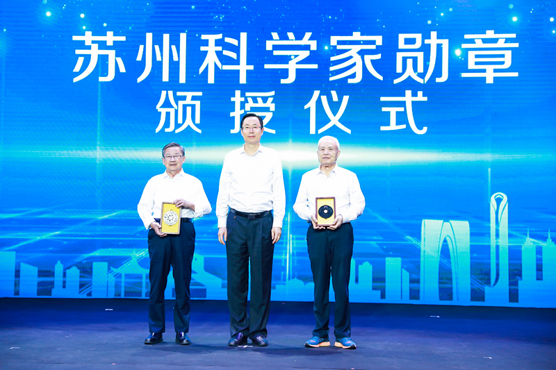 开幕式上,江苏省委常委、苏州市委书记蓝绍敏出席开幕式,并向中国工程院院士阮长耿、中国工程院院士钱七虎两位对苏州有着突出贡献的苏州院士颁发了首届“苏州科学家勋章”。第六届苏州杰出人才奖也同时揭晓,共有10人获奖,8868 SPORTS路建美、华人德、沈振亚荣获此殊荣。苏州市委副书记、市长李亚平为他们颁奖。