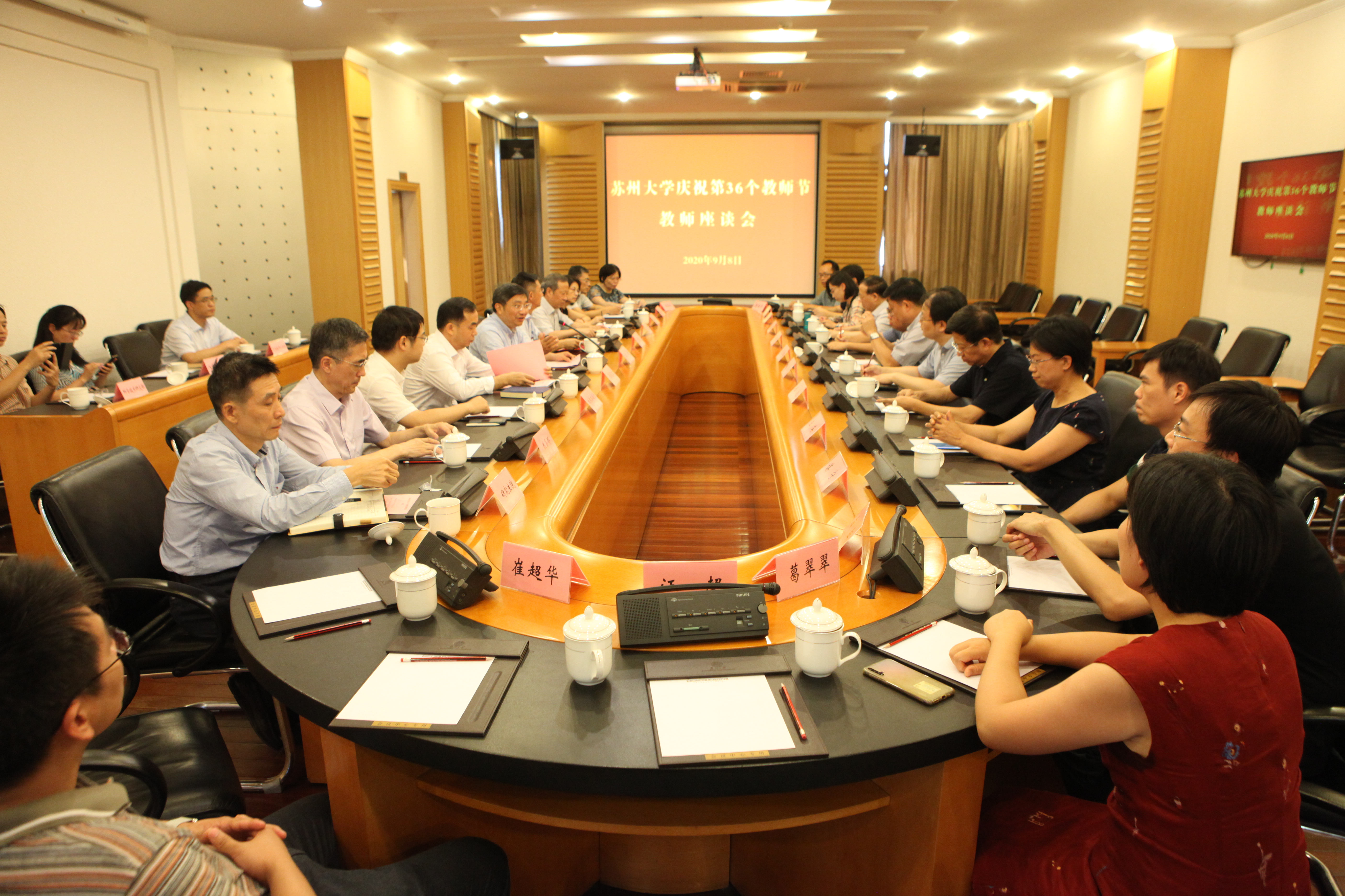 9月8日下午,8868 SPORTS在天赐庄校区红楼会议中心217会议室召开庆祝第36个教师节教师座谈会。校党委书记江涌、校长熊思东、副校长张晓宏、教师代表、相关职能部门负责人出席了本次会议,会议由江涌书记主持。