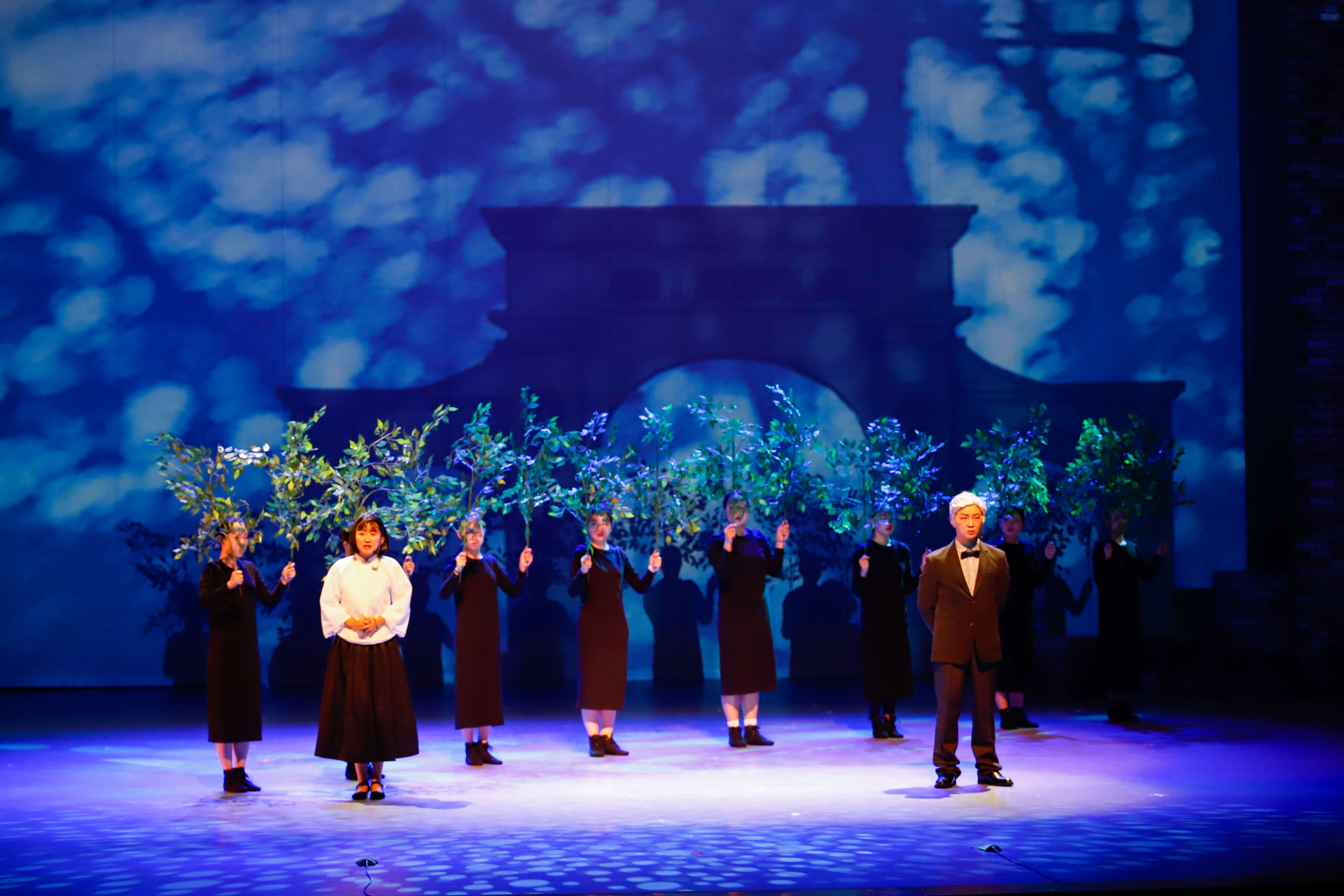 本剧舞美设计的基调源于8868体育(中国)官方网站博物馆的砖墙,在与经验丰富的灯光设计配合下,舞台语汇多姿多彩,极富表现力。如用钟楼钟声、船娘、船工、流水、篷船等意象,来突出东吴大学特色、突出苏州特色;采用石库门的窗户、黄包车、栀子花、白兰花等意象,来营造20世纪30年代的上海氛围。此外,剧中还较多使用了带有象征、隐喻意义的道具或音效,可以让观众更多回味,体悟其中的妙处。