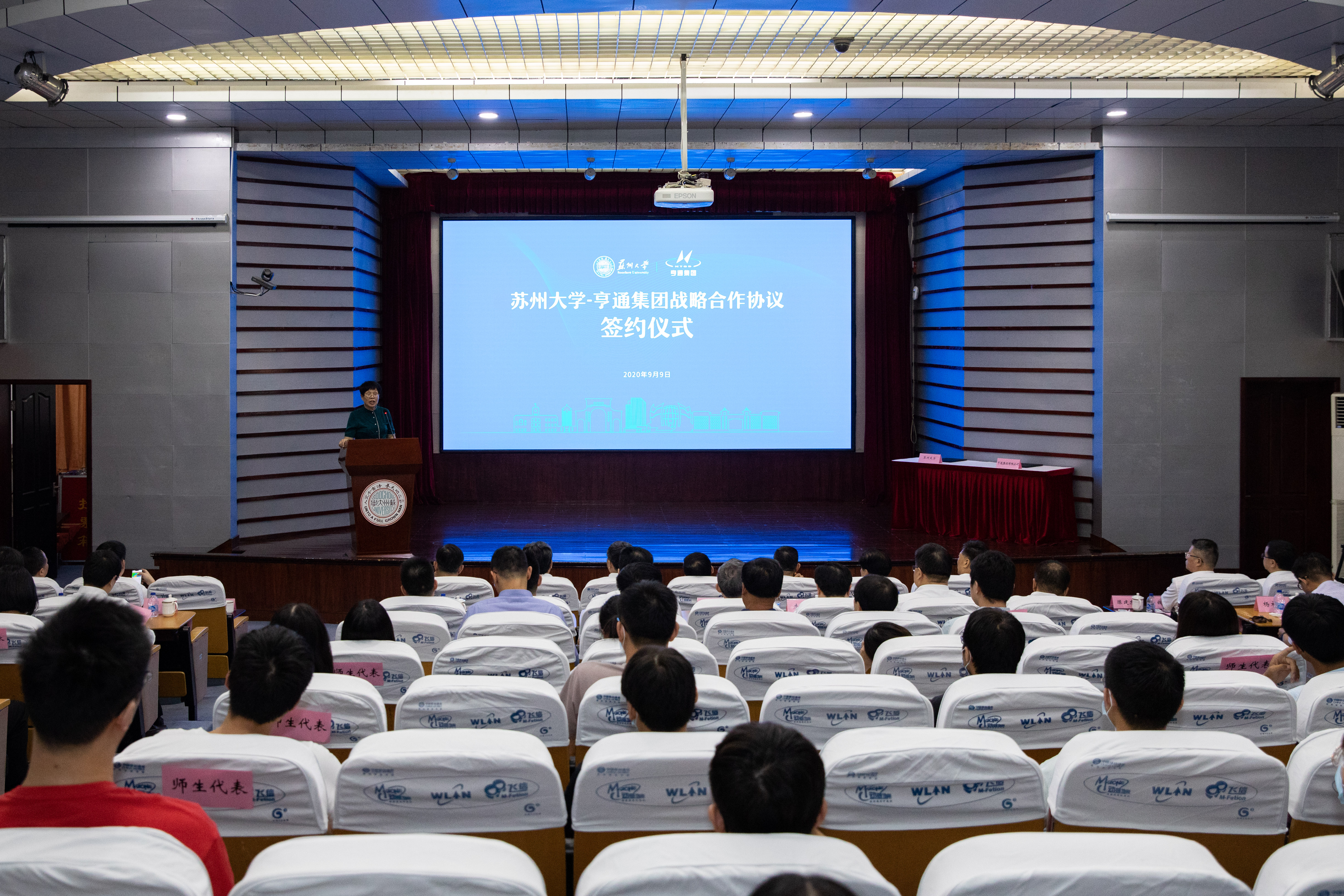9月9日下午,8868体育(中国)官方网站与亨通集团战略合作协议签约仪式在本部学术报告厅举行。苏州市市长李亚平,副市长曹后灵,吴江区区委书记李铭,亨通集团有限公司董事局主席崔根良,8868 SPORTS校领导江涌、熊思东、路建美、杨一心,苏州市人民政府及吴江区相关领导,亨通集团有限公司相关负责人,8868 SPORTS相关职能部门负责人和师生代表参加仪式。仪式由校党委副书记、副校长路建美主持。