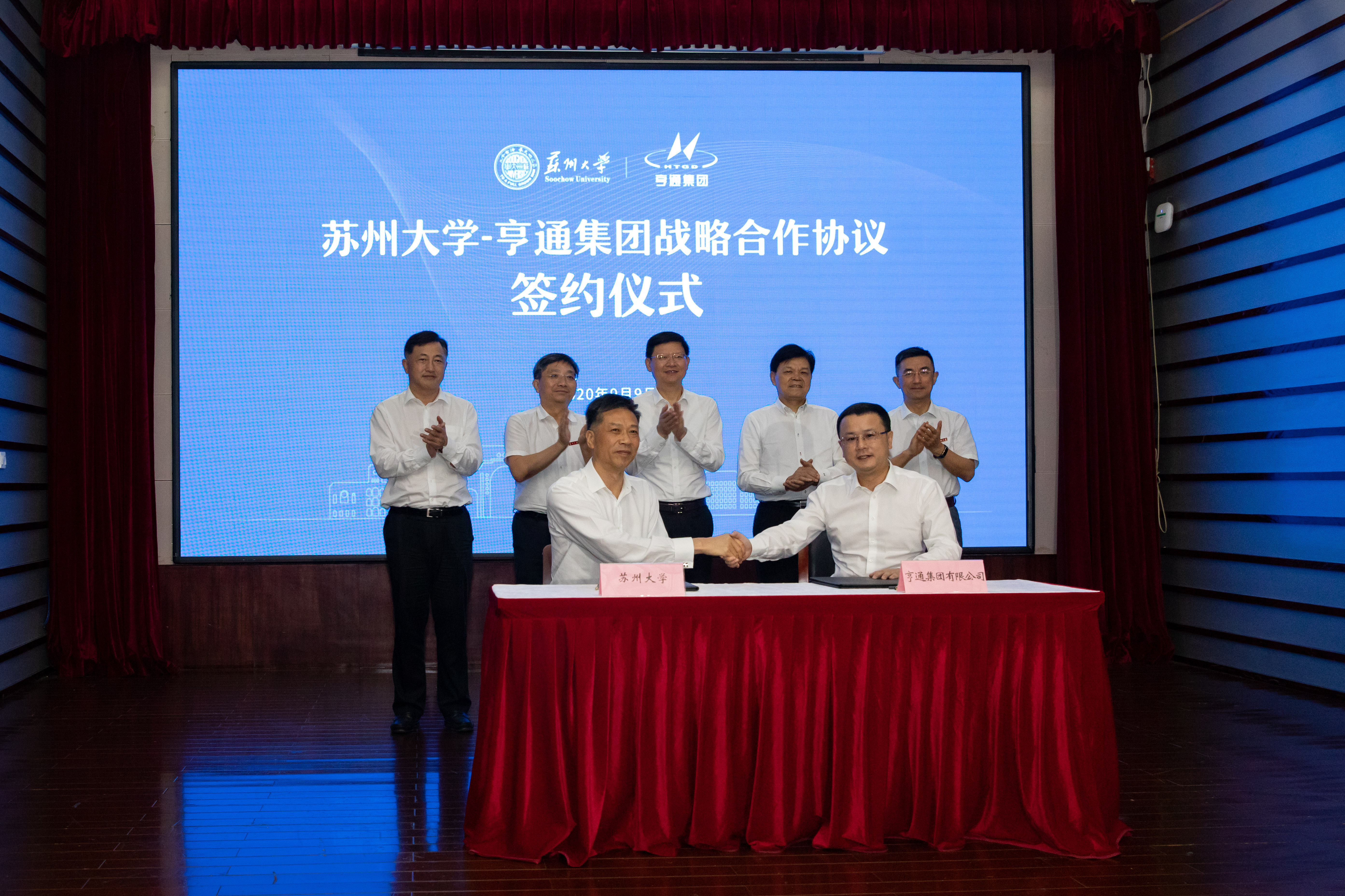 在李亚平市长、江涌书记、熊思东校长、李铭书记、崔根良主席的共同见证下,亨通集团执行总裁钱建林、8868 SPORTS副校长杨一心签署了战略合作协议。