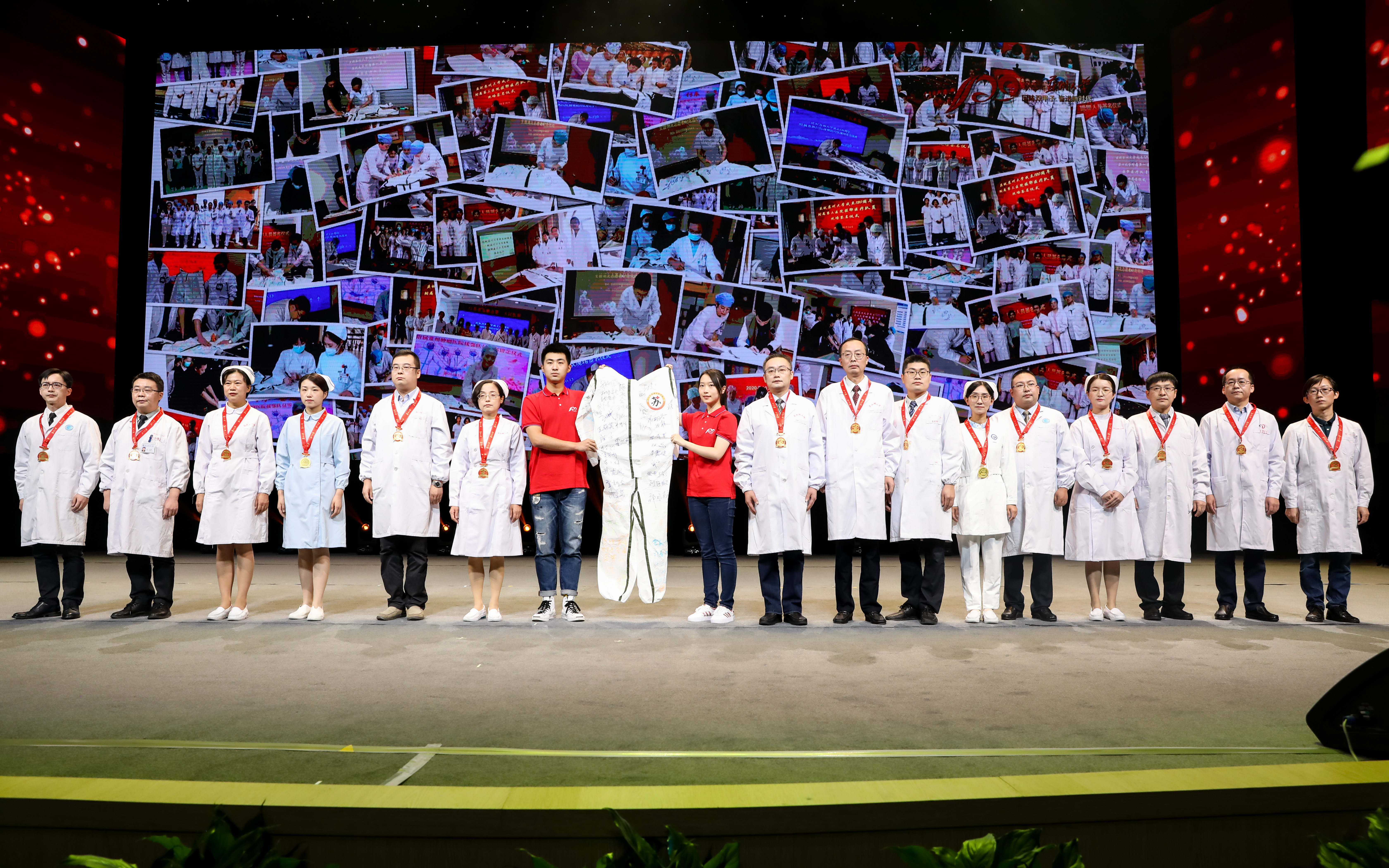 120年来,服务国家、奉献社会始终贯穿着8868体育(中国)官方网站的发展。今年年初,新冠肺炎疫情突如其来,8868体育(中国)官方网站 12 家附属医院的204 名医务人员出征驰援湖北。发展大会上,附属医院的援鄂英雄们,用一件签满姓名的防护服向母校献上生日礼。这件签满了 204 名抗疫英雄名字的防护服,将被8868体育(中国)官方网站博物馆永久收藏。而8868体育(中国)官方网站学子也将把这份医者仁爱之心代代传承。