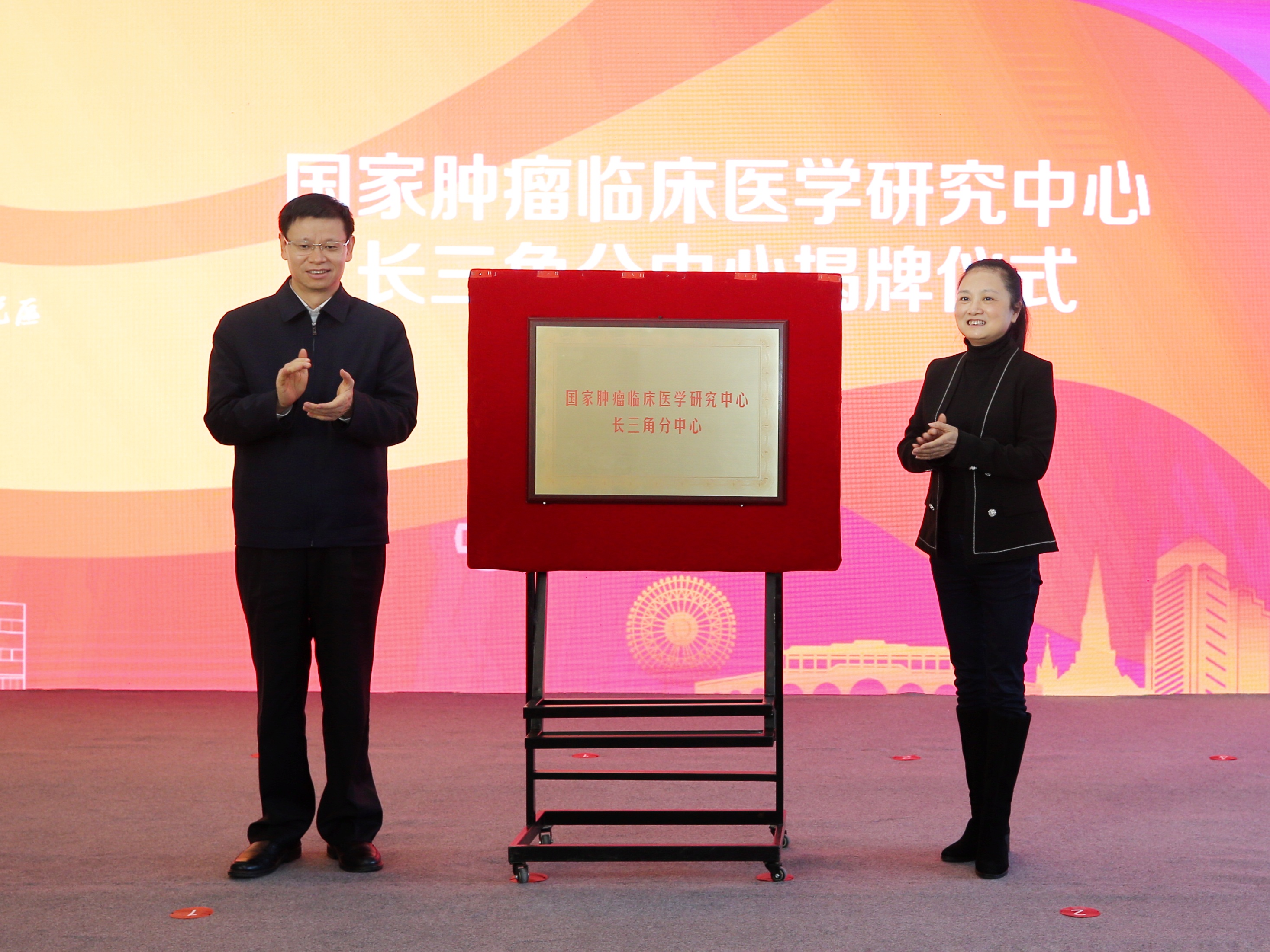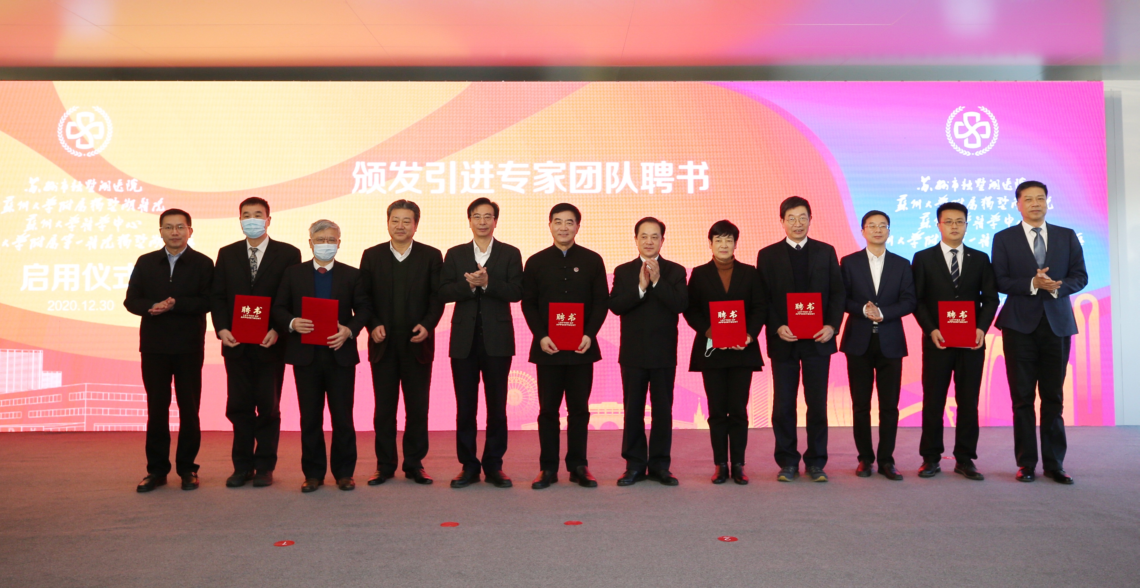 吴庆文书记、熊思东校长为“苏州工业园区生物医药临床转化中心”揭牌,许昆林书记、朱岷副主任为“国家肿瘤临床医学研究中心长三角分中心”揭牌。