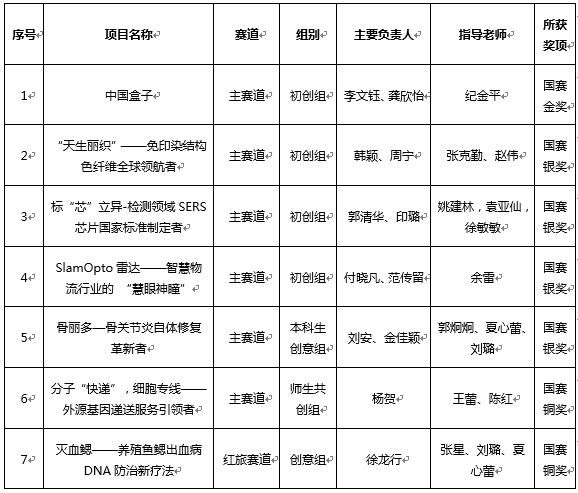其中,文学院校友李文钰带领本科生团队,依托中国—巴基斯坦商贸产业,打造《中国盒子》项目,在高教主赛道初创组激烈的竞争中脱颖而出,勇夺金牌。纺织与服装工程学院的《天生丽织》、材料与化学化工学部的《标“芯”立异》、机电工程学院的《SlamOpto雷达》、医学部的《骨丽多》等4个项目获得银奖,材料与化学化工学部的《分子“快递”,细胞专线》、医学部的《灭血鳃》等2个项目获得铜奖。