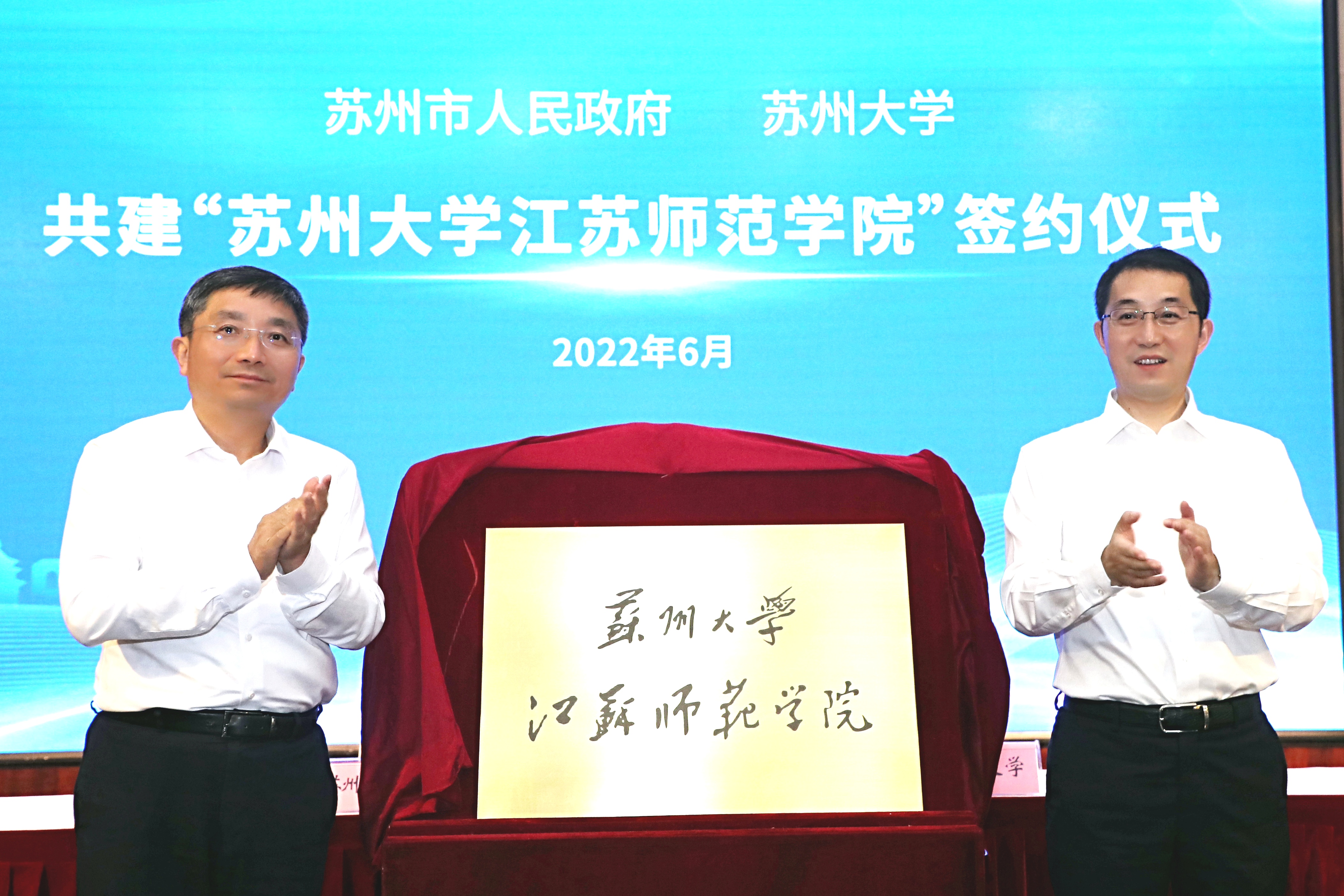 在热烈的掌声中,吴庆文市长、江涌书记共同为“8868体育(中国)官方网站江苏师范学院”揭牌。