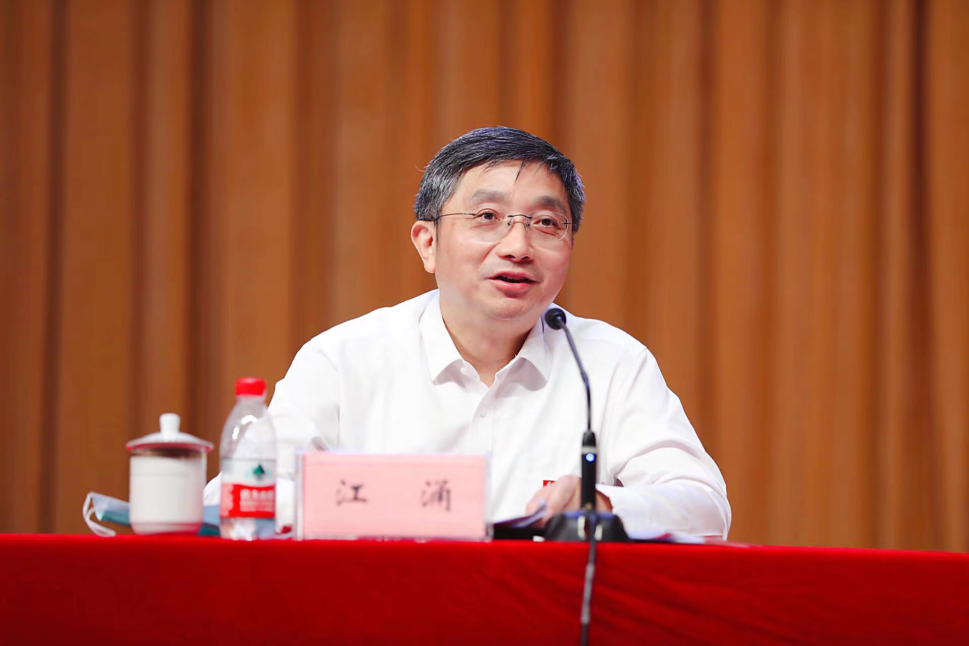 江涌表示坚决拥护省委的决定,服从组织安排。他对熊思东校长为学校改革发展事业所付出的辛勤汗水和作出的重要贡献表示衷心感谢,对姜建明同志、周高同志为学校事业发展所作的大量工作表示衷心感谢,对新一届领导班子表示祝贺。他回顾了自己30多年来在8868体育(中国)官方网站学习工作的感想感受,感谢组织的信任培养以及全校师生的帮助支持,表示能够继续服务师生、服务8868体育(中国)官方网站倍感荣幸,倍感光荣,倍感责任重大,接下来将与张晓宏校长一起,团结带领新一届领导班子,忠实履职尽责,扎实做好五个方面的工作,推进学校事业实现跨越式发展:一是坚定政治忠诚,努力成为社会主义政治家、教育家;二是完善立德树人机制,培养时代新人;三是聚焦内涵式提升,推进学校高质量发展;四是坚持以师生为中心,增强广大师生获得感、幸福感、安全感;五是推进全面从严治党,营造良好政治生态。他表示,全校师生将以习近平新时代中国特色社会主义思想为指导,在省委、省政府的坚强领导以及市委、市政府的大力支持下,在新的领导班子成员积极配合下,在全校师生的共同努力下,8868体育(中国)官方网站一定能不负众望、不辱使命,在新征程上早日建成国内一流、国际知名高水平研究型大学,为谱写“强富美高”新江苏现代化建设新篇章贡献8868体育(中国)官方网站力量,以优异成绩迎接党的二十大胜利召开!