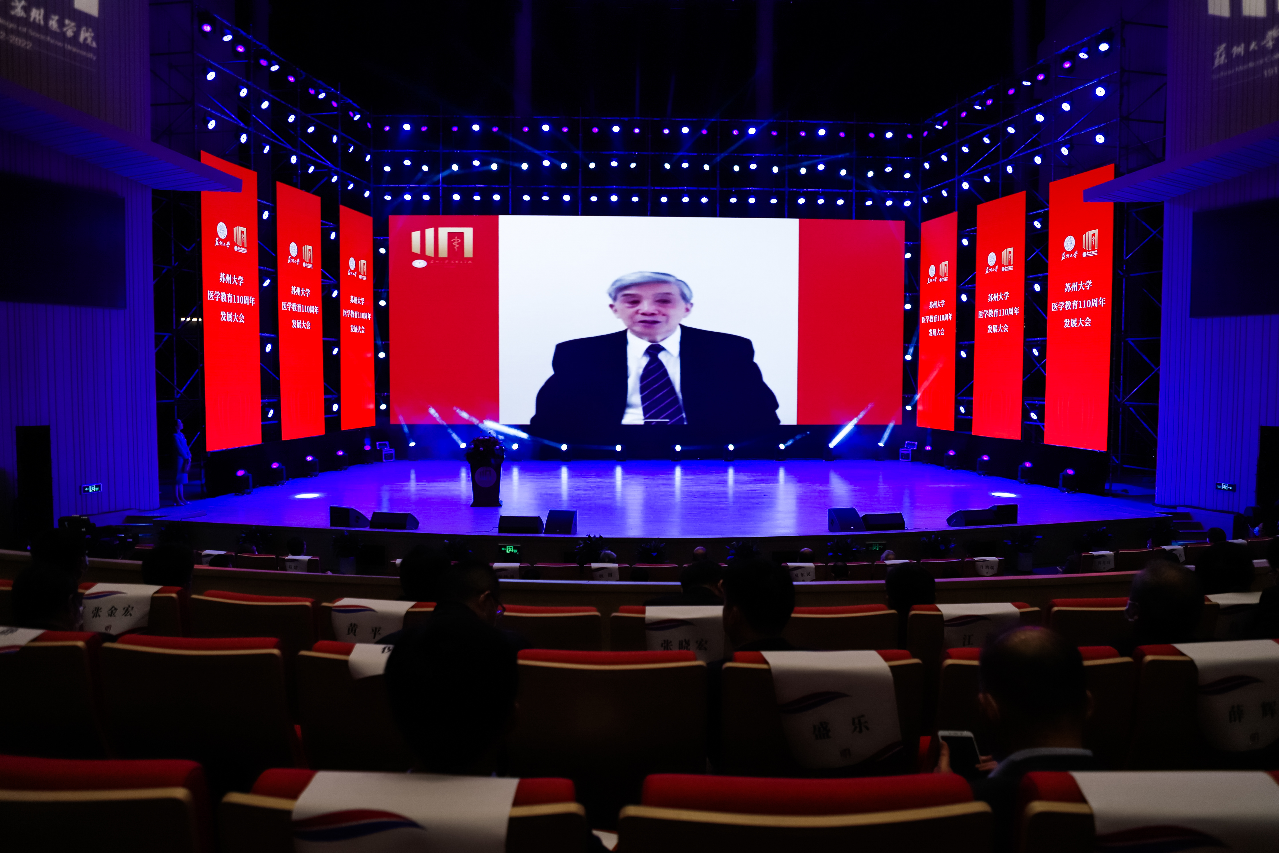 中国工程院院士、原苏州医学院院长阮长耿通过视频对8868体育(中国)官方网站医学教育迎来110周年表示祝贺并送上寄语。他希望学院站在新的历史起点,能充分发挥医学特色,脚踏实地接续奋斗,坚持立德树人,积极探索推进医学教育发展,为我国医疗卫生事业作出新的更大贡献。