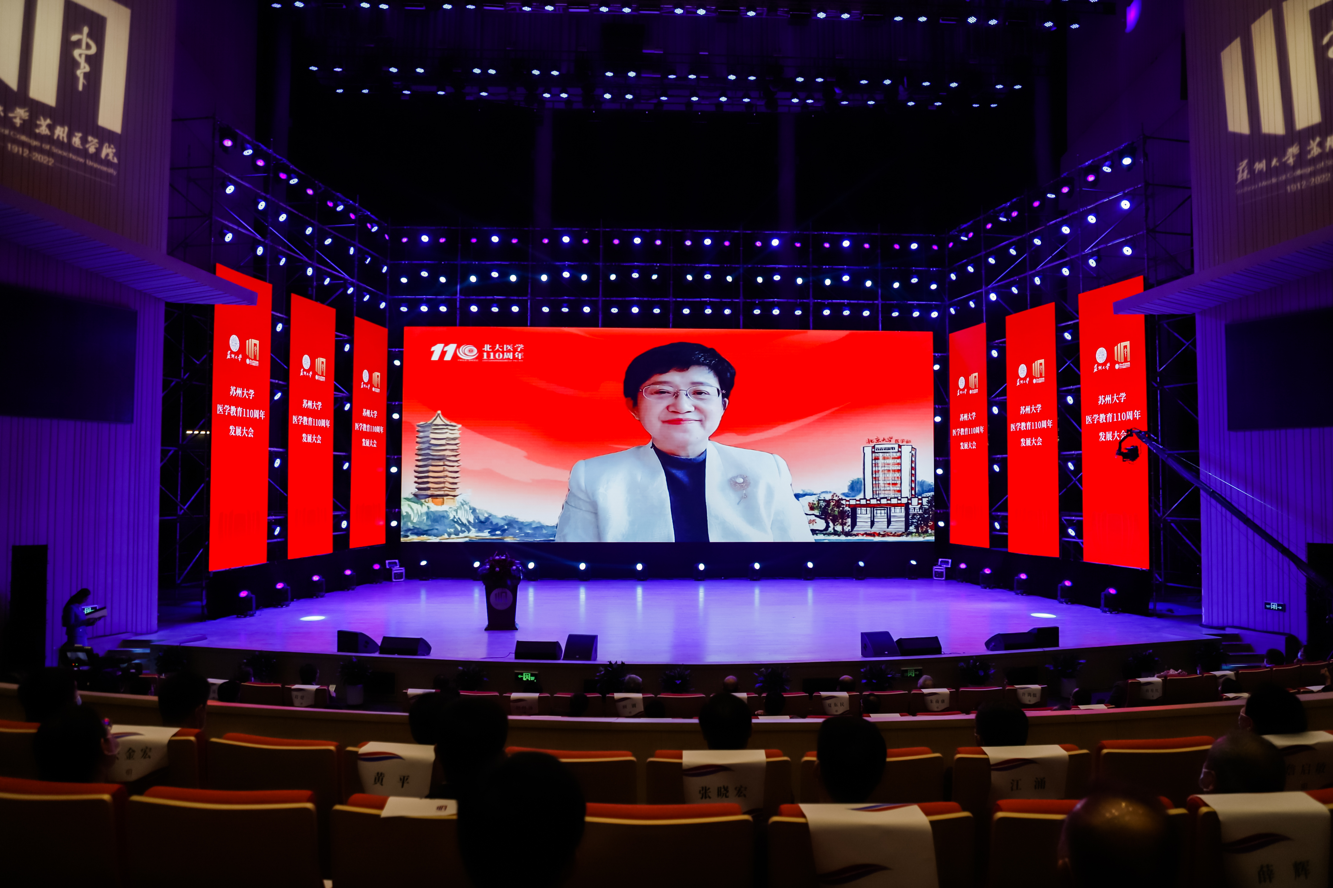 季晶代表苏州市委市政府向全体师生、校友和医护员工表示热烈祝贺。她指出,苏州医学院走过了110年光荣办学历程,在高质量人才培养、高水平科学研究、高层次创新平台建设等方面取得了一系列突出成果。“四方共建”8868体育(中国)官方网站苏州医学院及附属医院顺利落地,标志着8868体育(中国)官方网站医学教育在深化医教协同、办好综合性大学医学院的努力探索中迈出具有里程碑意义的一步。苏州市政府将一如既往全力支持8868体育(中国)官方网站建设中国特色世界一流大学,支持8868体育(中国)官方网站持续做强医学特色,打造高水平医学院,不断提升附属医院的建设水平和辐射力,为人民健康事业贡献苏医力量。