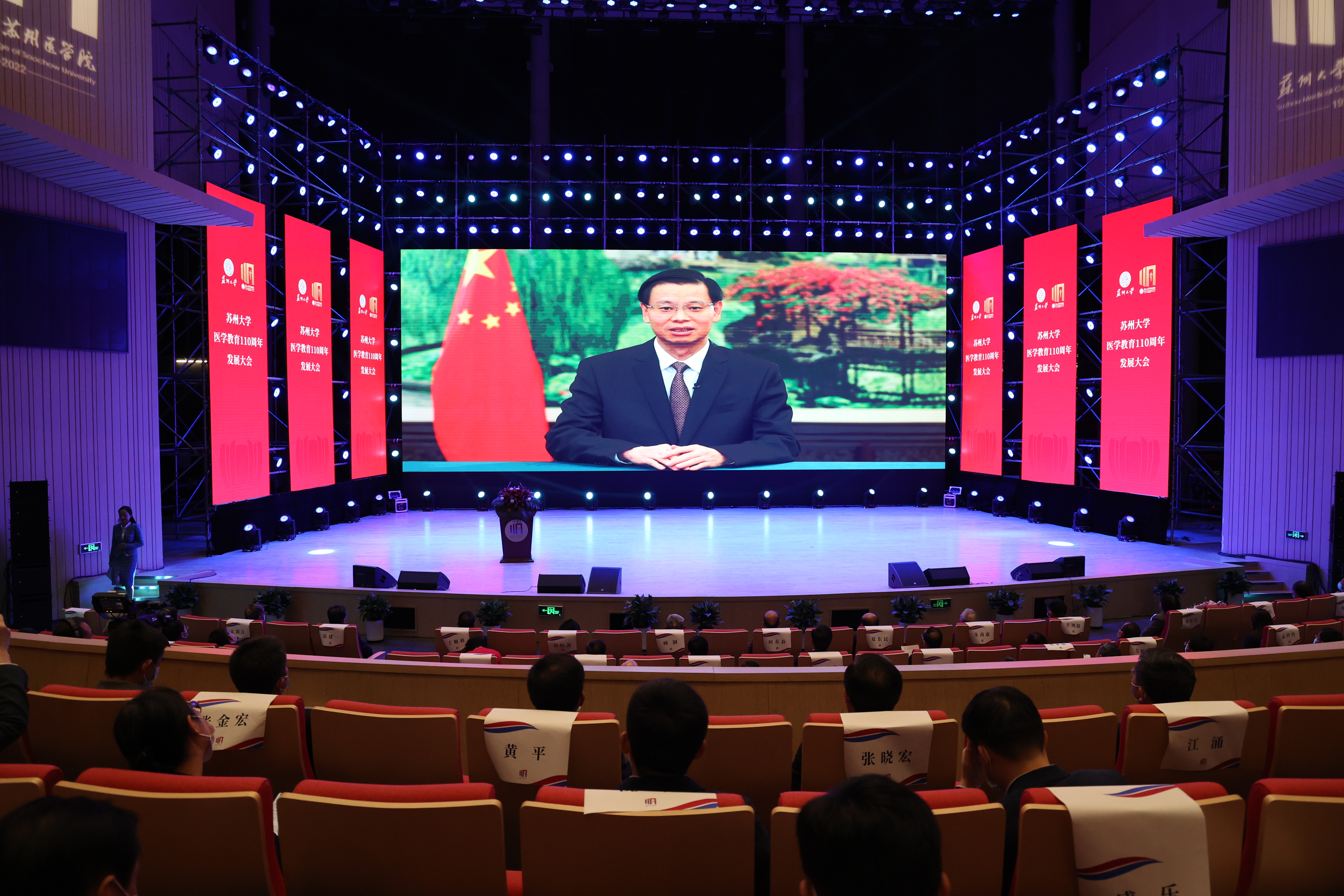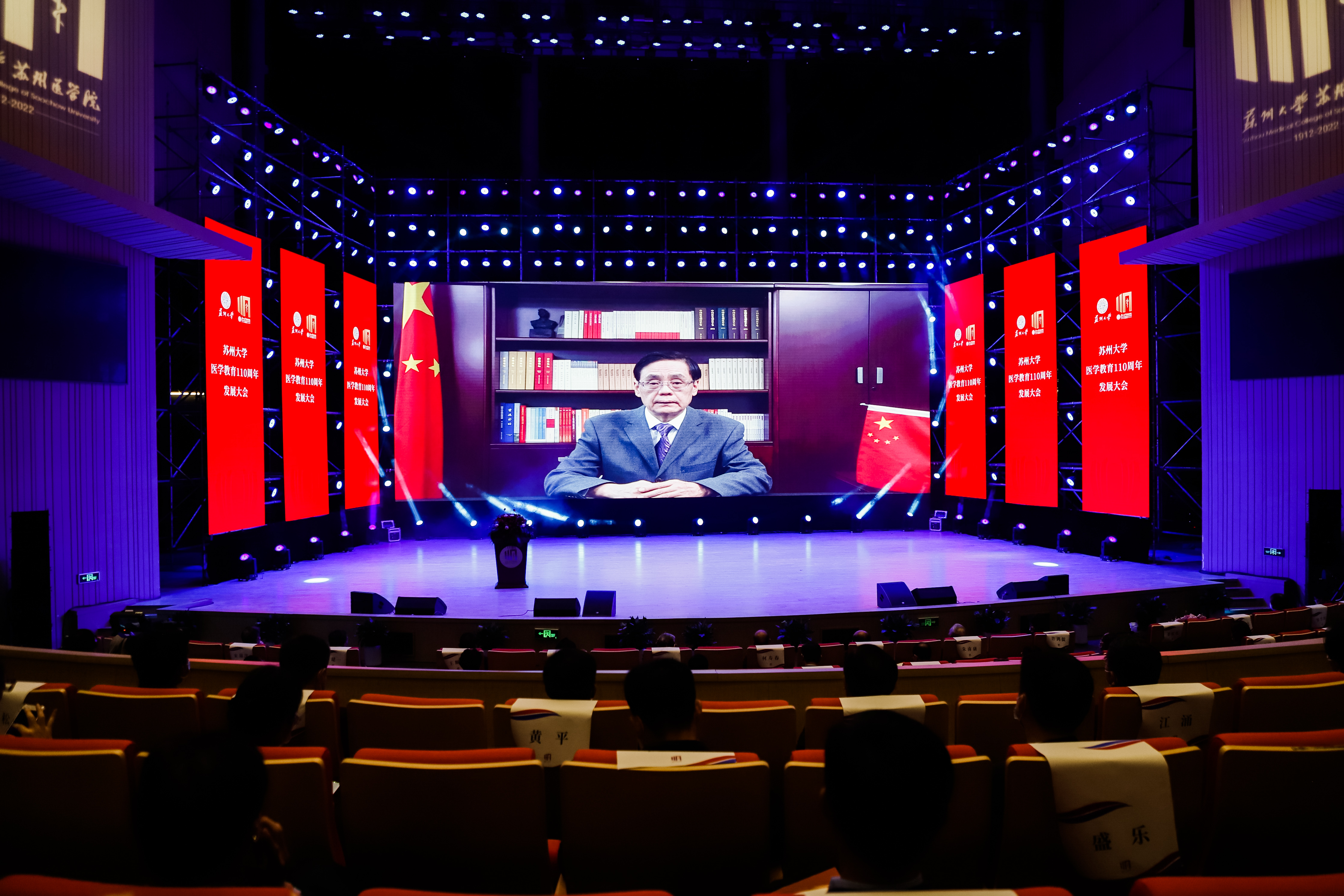 陈竺在视频讲话中指出,百十年来苏州医学院围绕医学教育,与国家同呼吸,与民族共命运,开现代医学之先河,探生命科学之奥秘,创护佑健康之伟业,在基础医学、临床医学、放射医学以及血液病诊疗等领域取得了一批重大标志性成果。立足新征程,希望苏医深入学习贯彻党的二十大精神,不负时代使命,心怀“国之大者”,加快建成中国特色、世界一流医学院和卓越医学中心,培养更多情系人民、服务人民、医德高尚、医术精湛的仁心医者,为全面建设社会主义现代化国家、实现中华民族伟大复兴贡献更多8868体育(中国)官方网站力量。