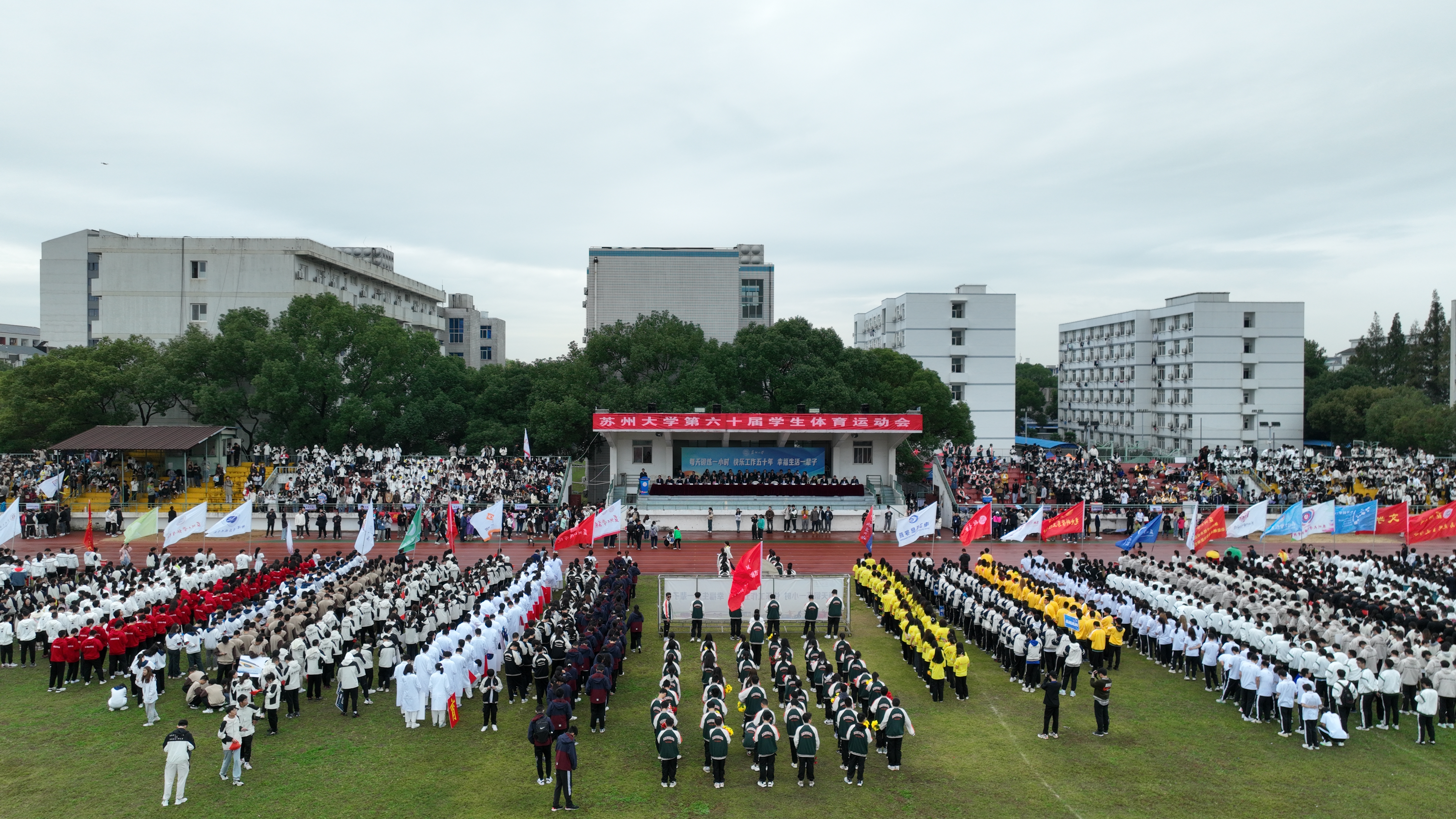 10月21日下午,本届体育运动会闭幕式在东区运动场举行。校党委副书记邓敏,校党委常委、副校长查佐明,江苏省学生体协高校工作委员会主任王家宏,各学院(部)及职能部门负责人出席闭幕式。仪式由查佐明主持。