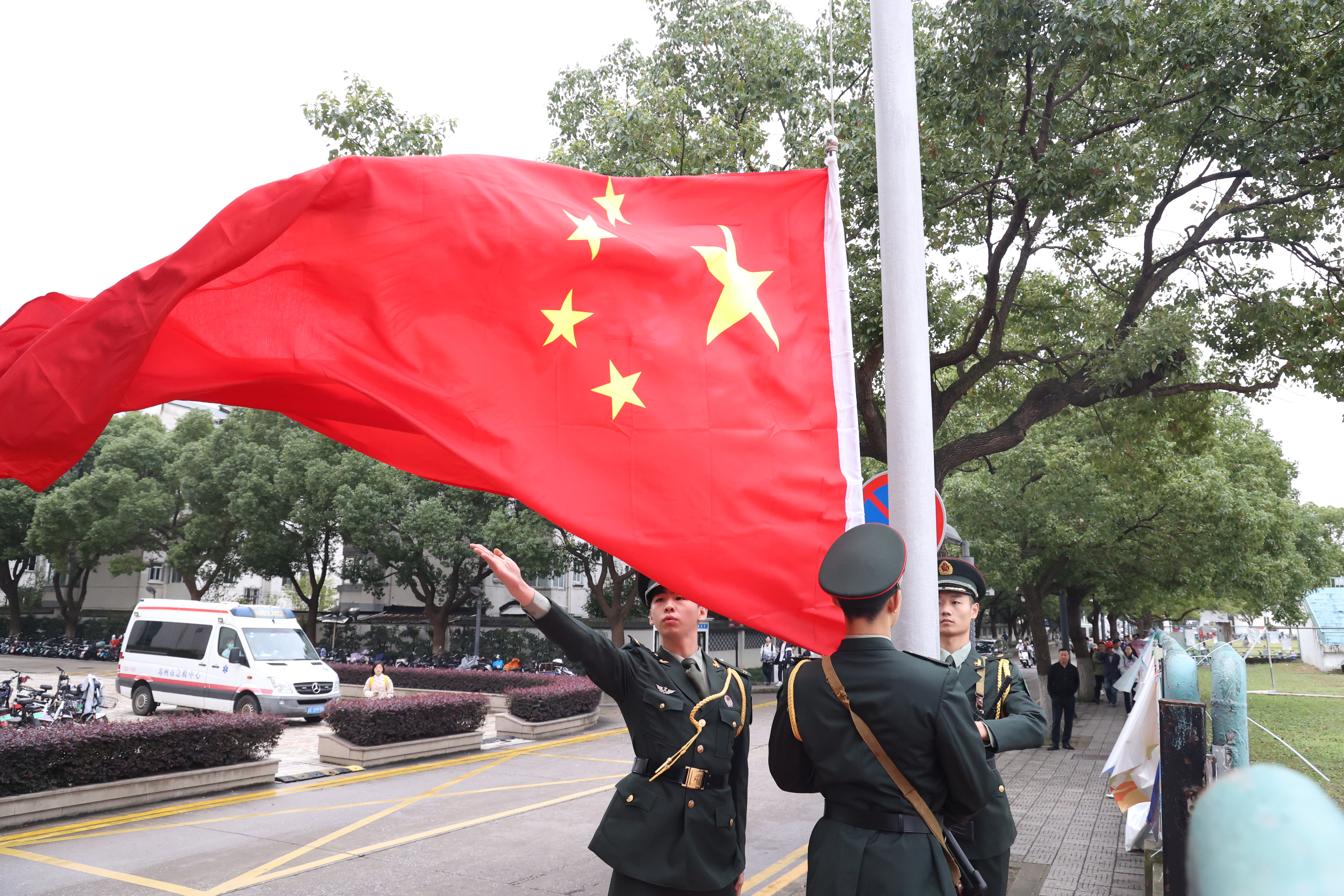 伴随进行曲的激昂节拍,各学院(部)方阵依次入场,共赴这场激情洋溢的运动盛会。在普通组运动队展示和热闹的舞龙舞狮环节后,高昂雄壮的《义勇军进行曲》响起,鲜艳的五星红旗在全场师生的注目中冉冉升起。
