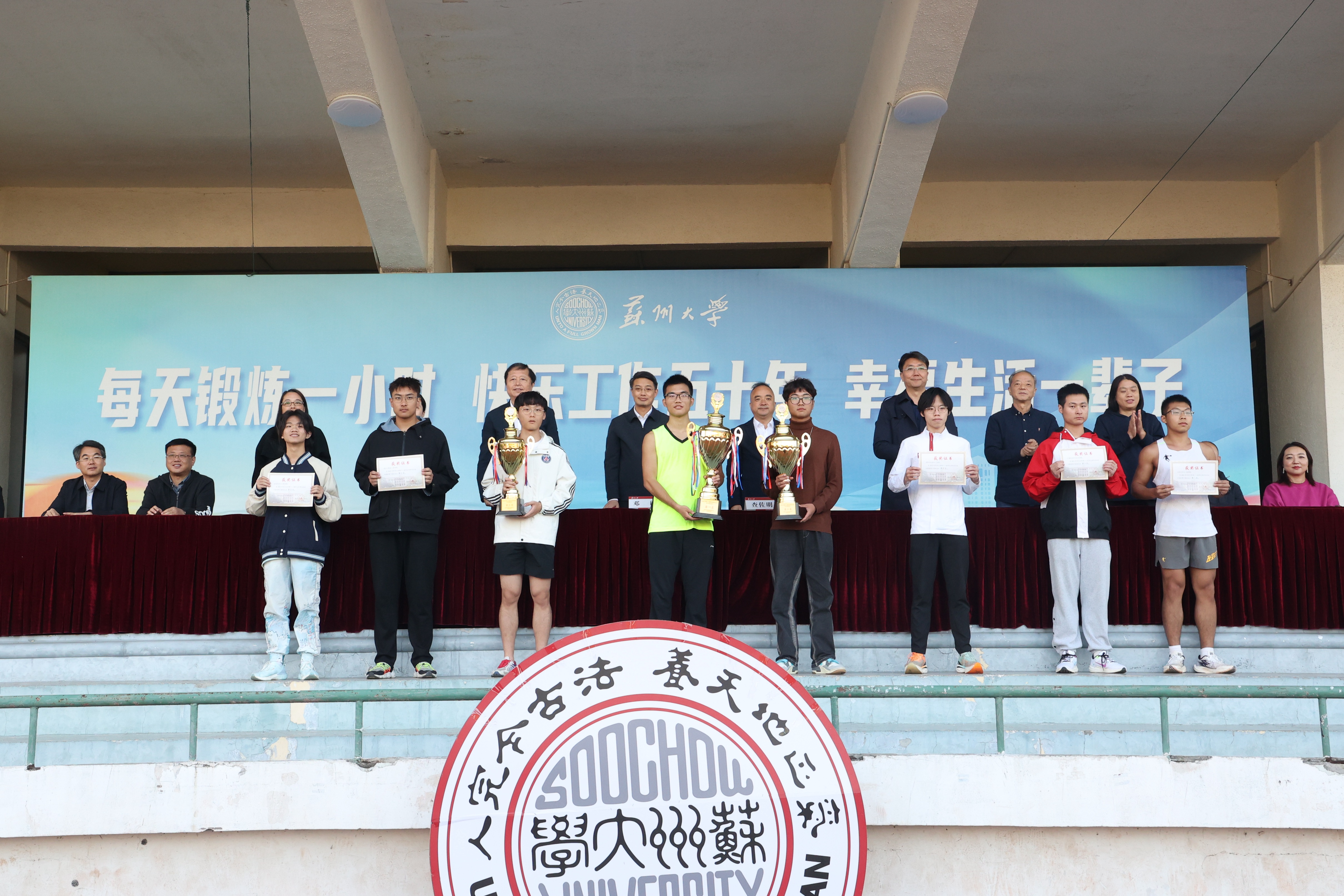 体育道德风尚奖:轨道交通学院、机电工程学院、光电科学与工程学院、政治与公共管理学院、传媒学院、敬文书院、社会学院、金螳螂建筑学院、文学院、沙钢钢铁学院、电子信息学院、材料与化学化工学部