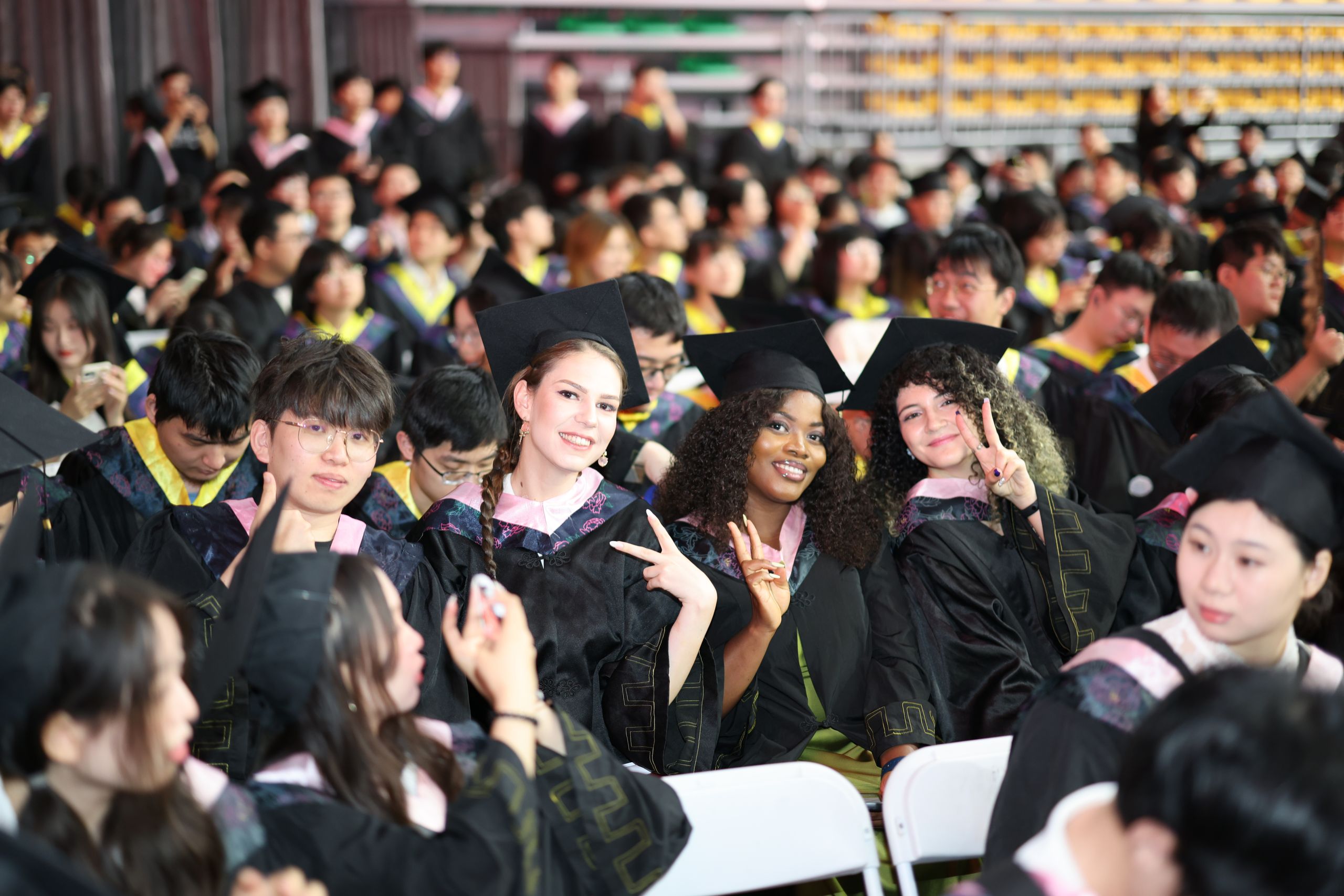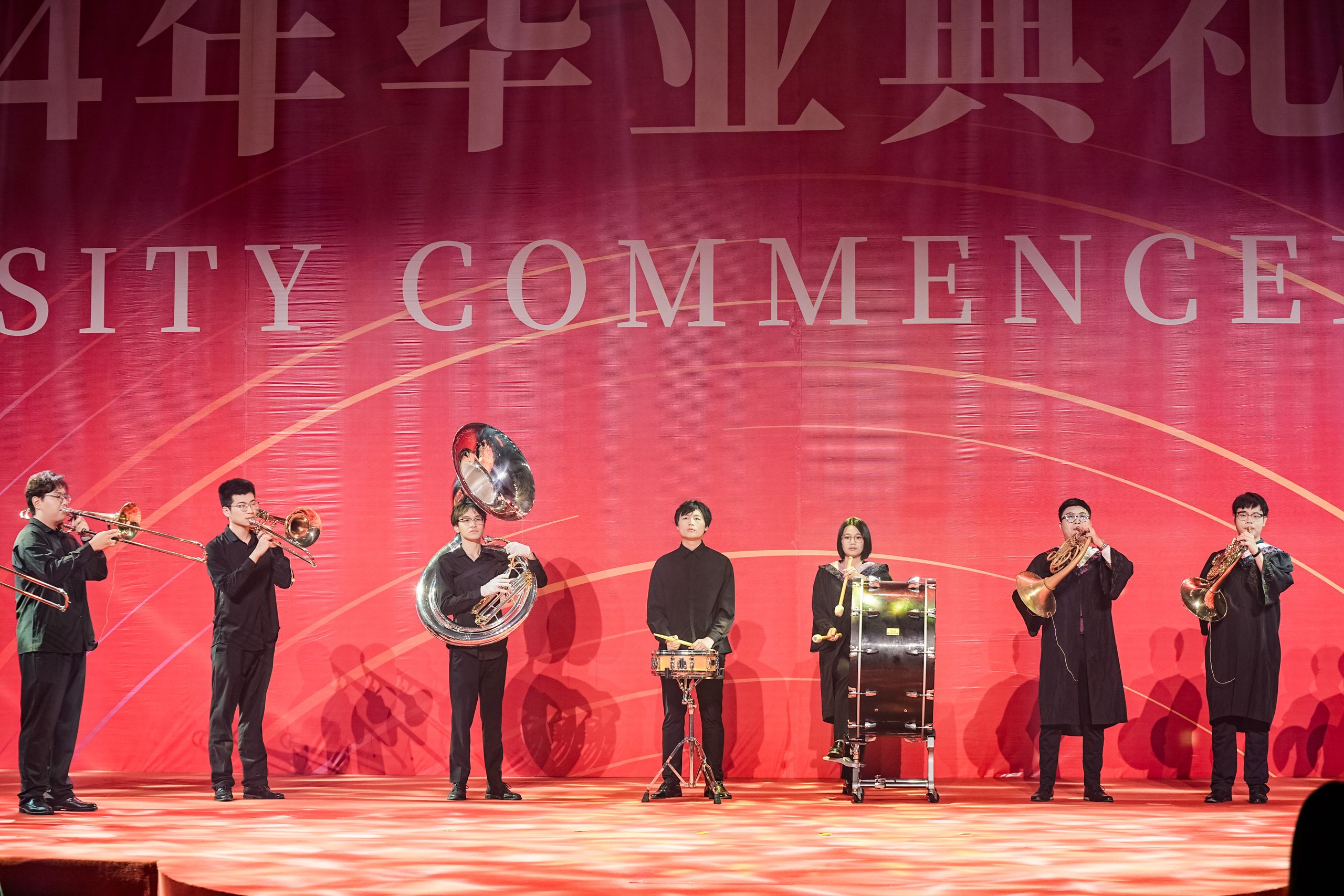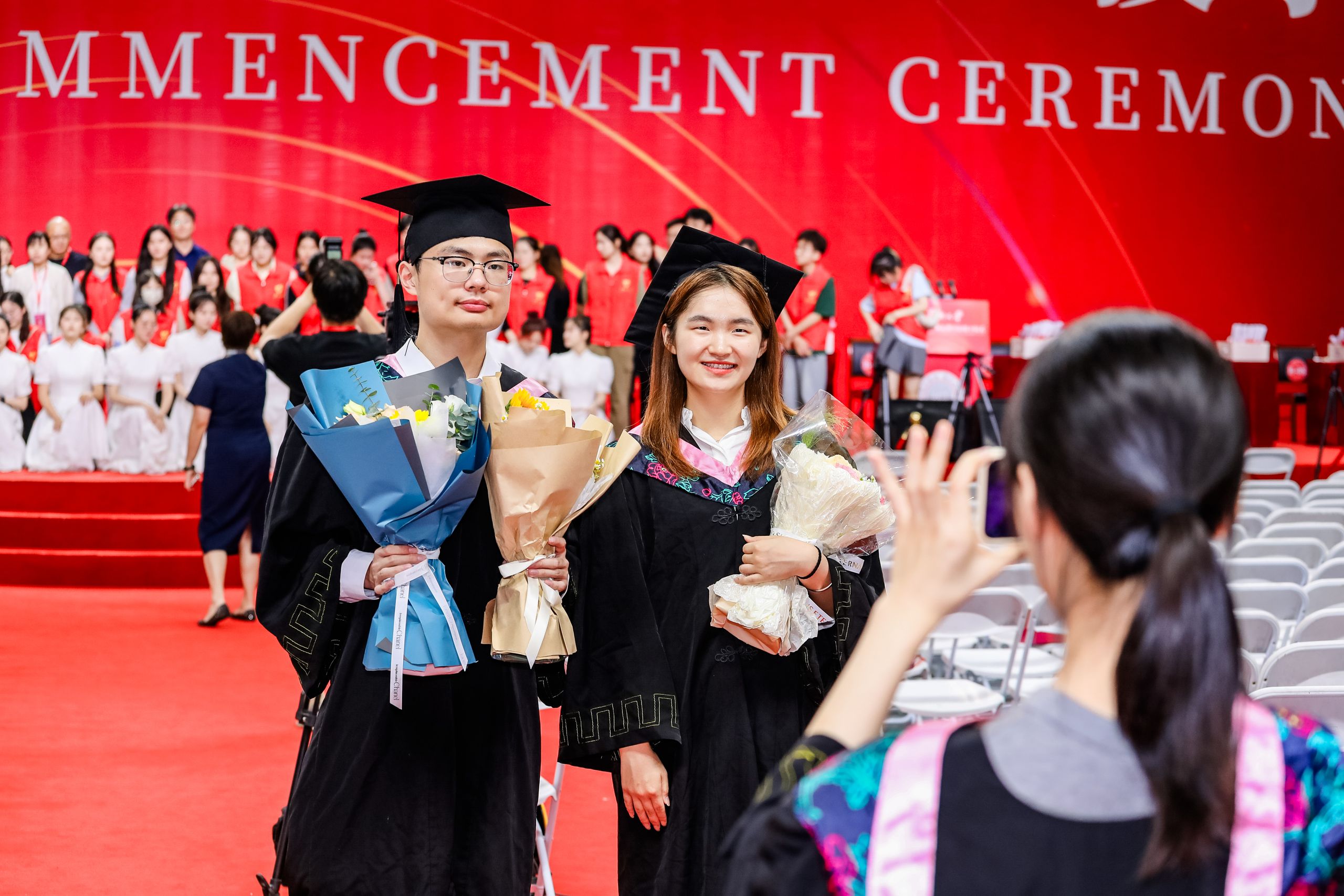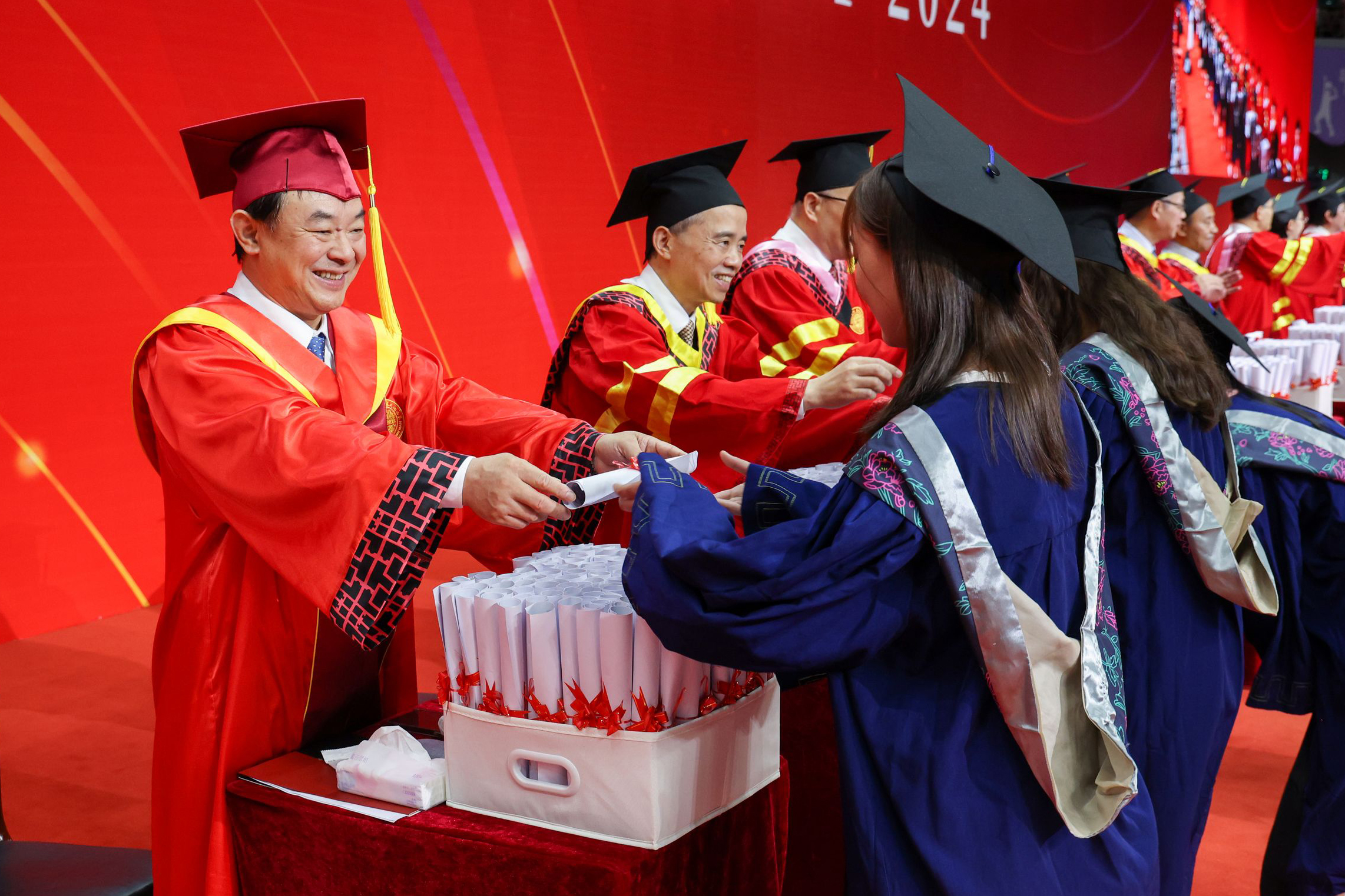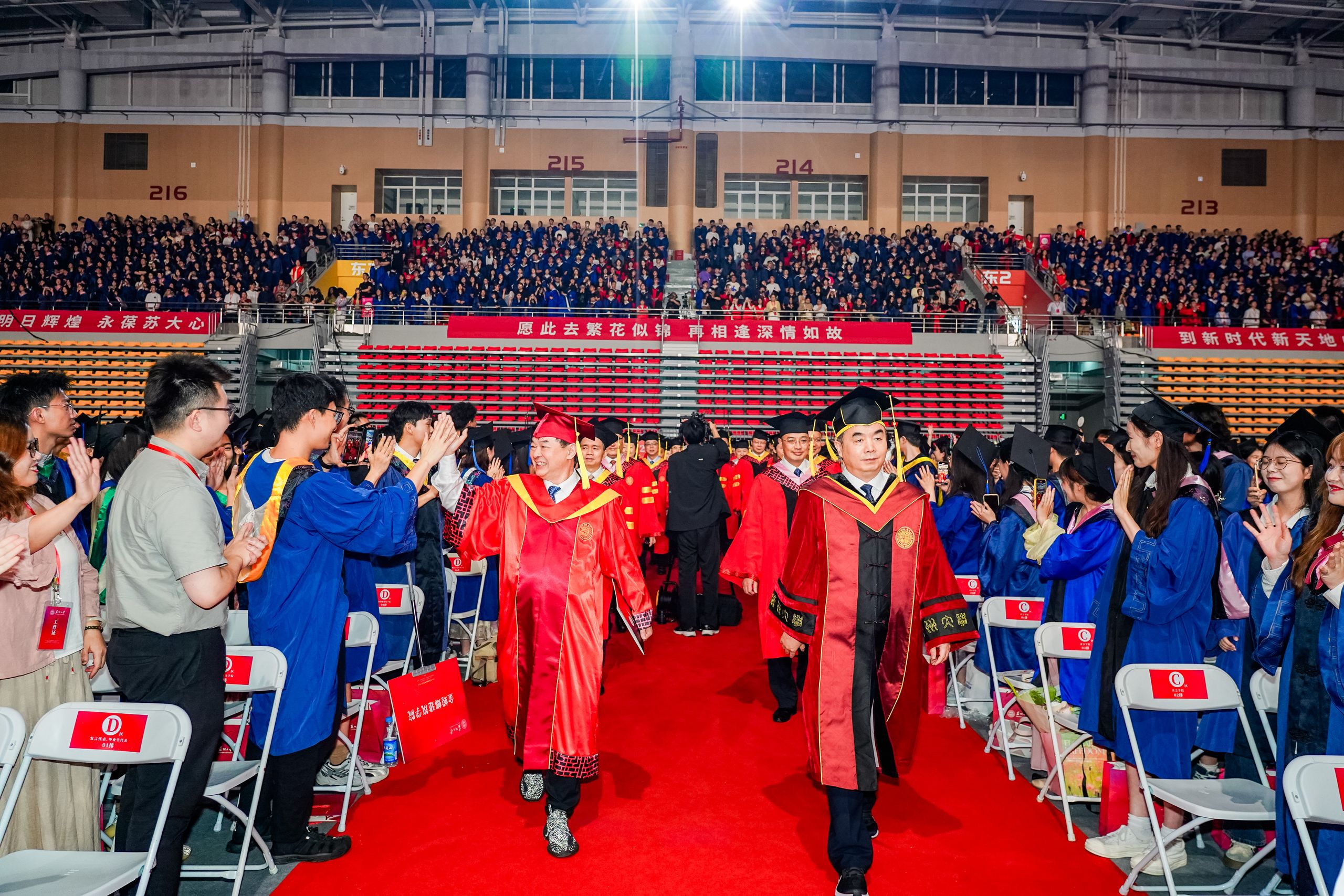 全体校领导、各学位评定分委员会成员、研究生导师、职能部门负责人,各学院(部)负责人、教师、辅导员、2024届毕业生和部分2020届毕业生,在校生代表及家长代表出席毕业典礼。学校的食堂师傅、宿管阿姨、保安大叔、快递小哥代表也应邀来到了现场,一起见证毕业生们重要而幸福的时刻。典礼由校党委副书记、副校长沈明荣主持。