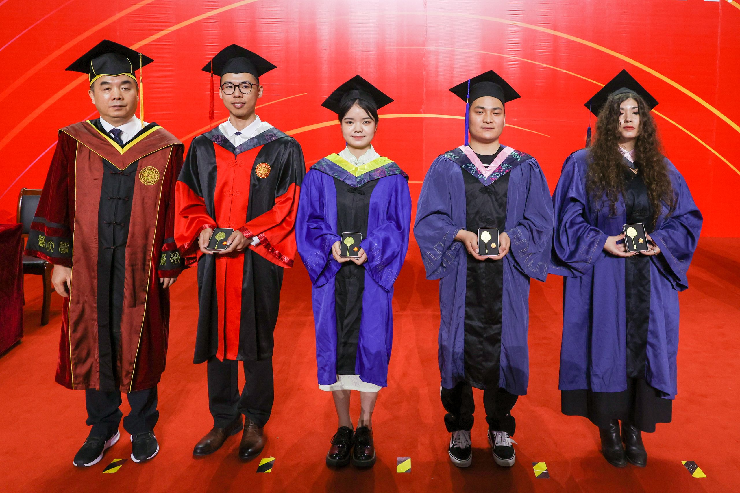 临别之际,校党委书记张晓宏分别为沙钢钢铁学院吕潞瑶、商学院时思维、纳米科学技术学院徐家铭、外国语学院陈芊羽、苏州医学院CHADHA ANGAT NARESH五位本科生代表,和体育学院关鑫鑫、苏州医学院基础医学与生物科学学院陈学士、电子信息学院谭志苇、商学院ROSSI MARINELLA四位研究生代表赠送毕业纪念品,并与同学们合影留念,期望大家带着母校的美好回忆和教诲祝福,开启新的人生旅程。