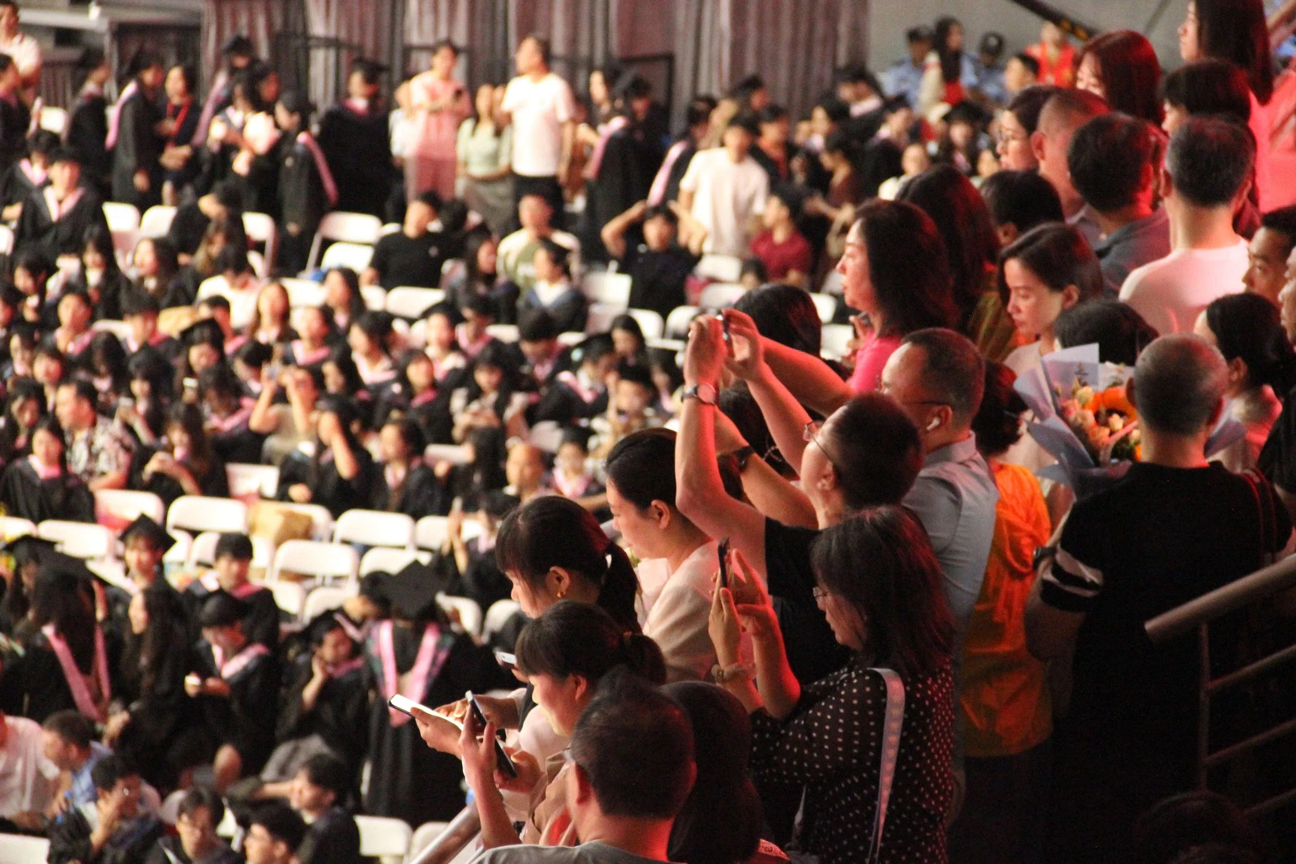 值得一提的是,今年还有500多名家长来到现场,见证孩子的毕业时刻。“女儿参加了《歌舞青春》的舞蹈表演,虽然距离很远,但能亲眼见证她在舞台上闪耀的模样,我感到特别自豪,真心感谢学校多年来的栽培。”2020级纺织与服装工程学院毕业生付婉婷的爸爸从青海赶到毕业典礼现场,陪伴之间,满是温情与骄傲。