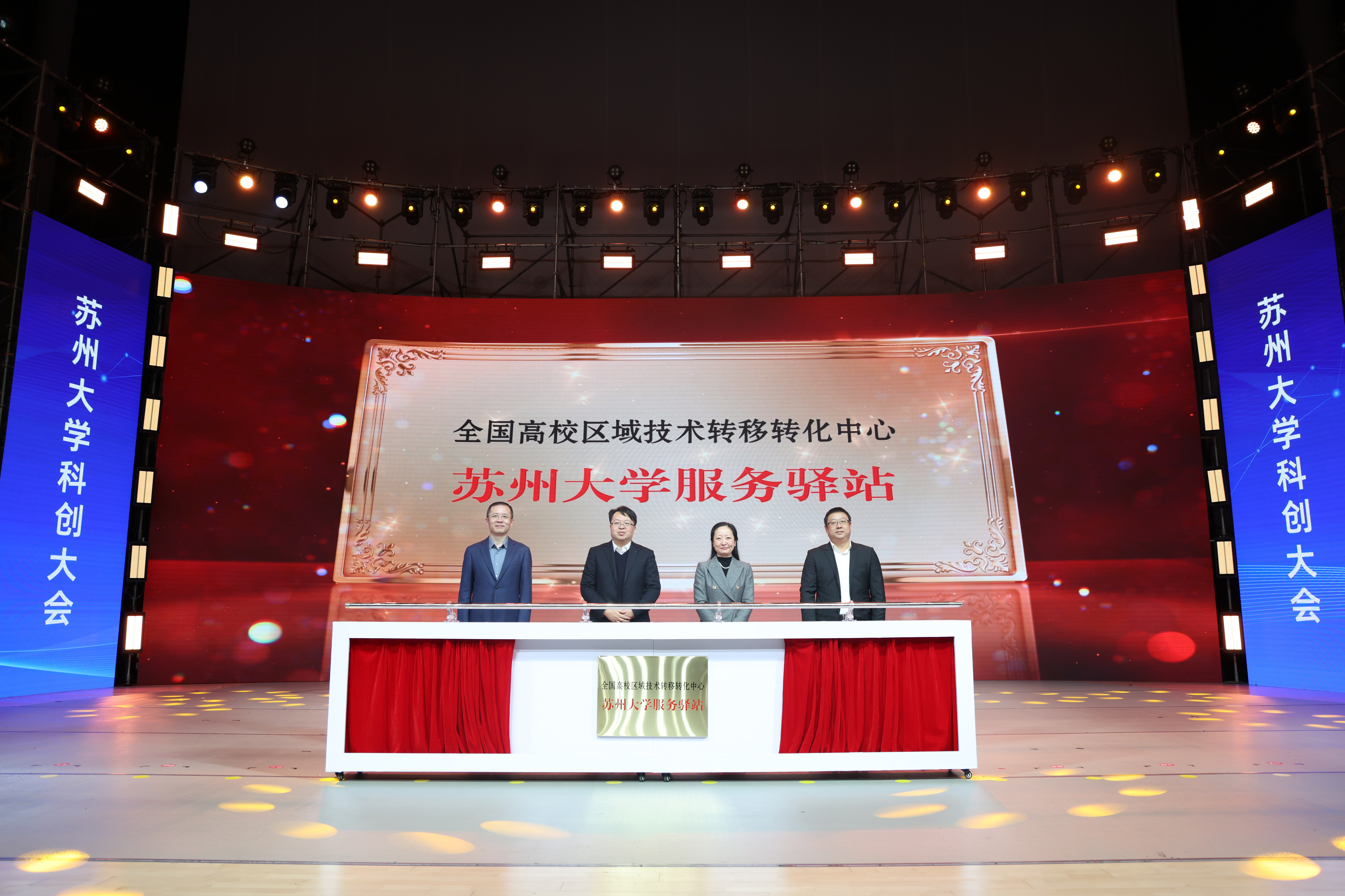刘博、工业园区副主任倪乾、相城区副区长罗敏、8868 SPORTS副校长吴嘉炜为全国高校区域技术转移转化中心8868体育(中国)官方网站服务驿站揭牌。