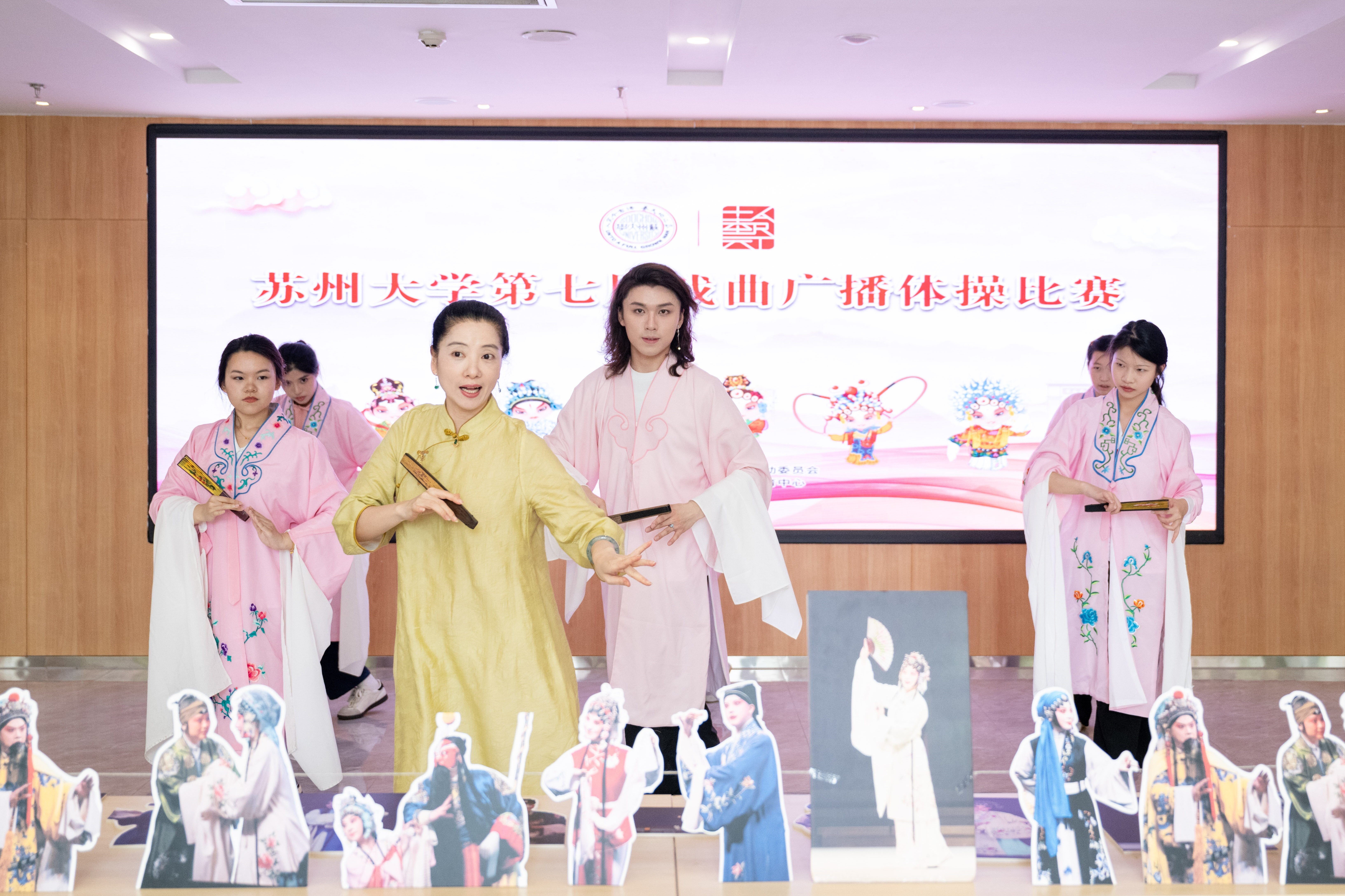 活动邀请全国中小学美育教指委委员、市舞蹈家协会副主席、艺术学院教授戴岗,东吴学院副教授崔云霞,国家级竞技健美操健将、全国冠军、东吴学院教师缪澄,苏州幼儿师范高等专科学校副教授、市舞蹈家协会理事王婉青,苏州城市学院设计与艺术学院教师、市舞蹈家协会理事郑天琪担任评委。评委们指出,戏曲广播体操融合了体操的“力度”与戏曲的“柔度”,鼓励同学们注重对节奏、线条、韵律和体态等细节的艺术把控,展现身体素质与艺术表达的双重融合。