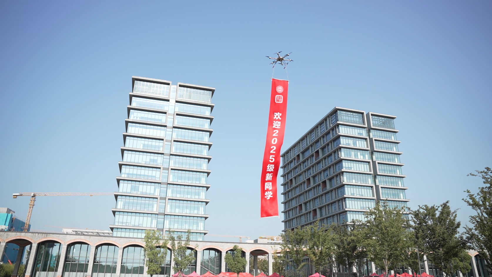 在未来校区,迎新横幅随着无人机缓缓升起,“欢迎2025级新同学”格外醒目。翩翩起舞的机器人热情欢迎新同学们的到来。由无人接驳车、无人行李托运车组成的迎新小队成为校园里一道靓丽的风景线,它们科技感满满、未来感十足,在繁忙的迎新季帮忙接驳带路、搬运行李。