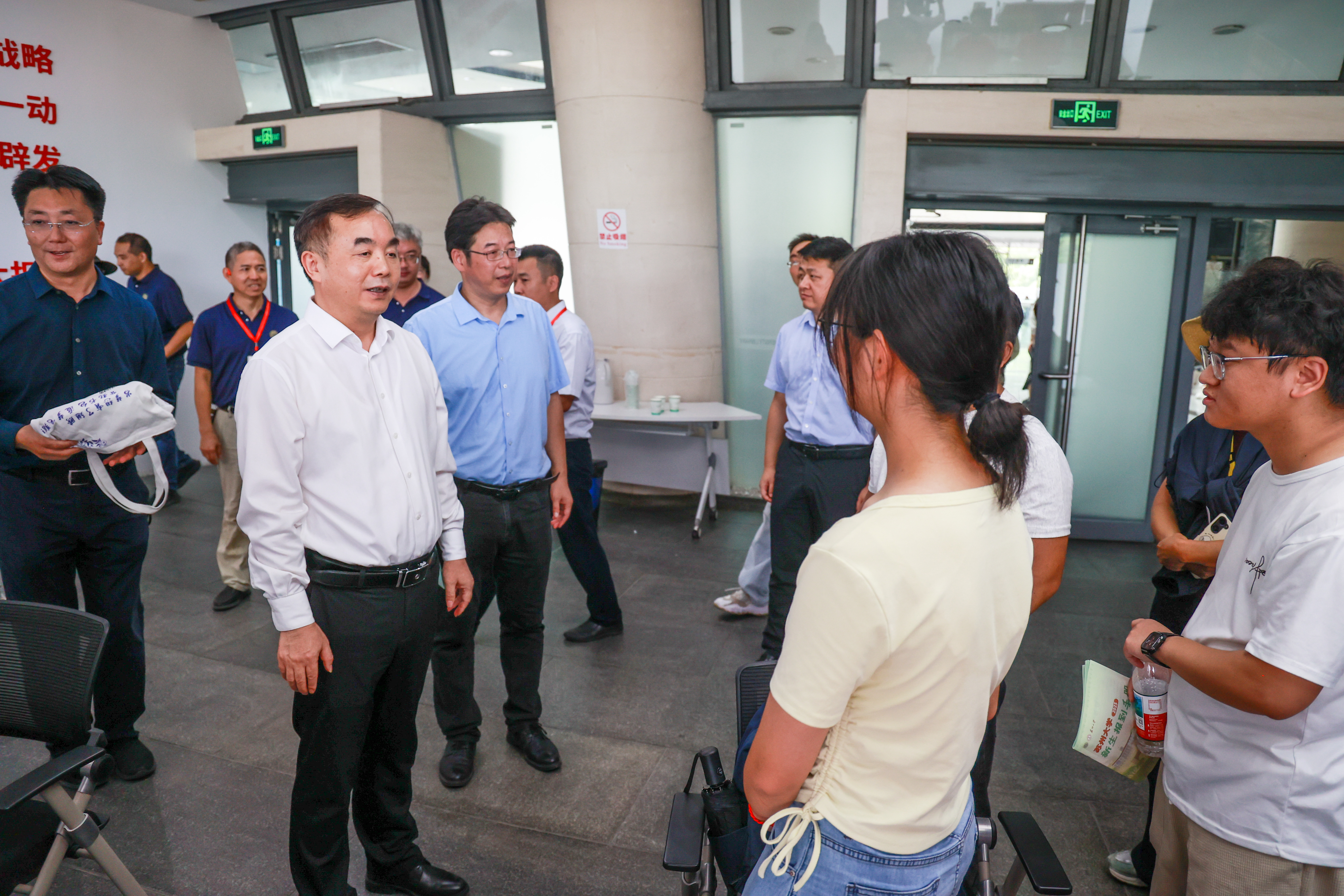 校领导沈明荣、姚建林、查佐明、王云杰来到迎新现场,详细了解新生报到情况及各项迎新保障工作,并鼓励新生积极主动融入校园生活,敢想敢做、勇于创新,努力绘就精彩的青春篇章。