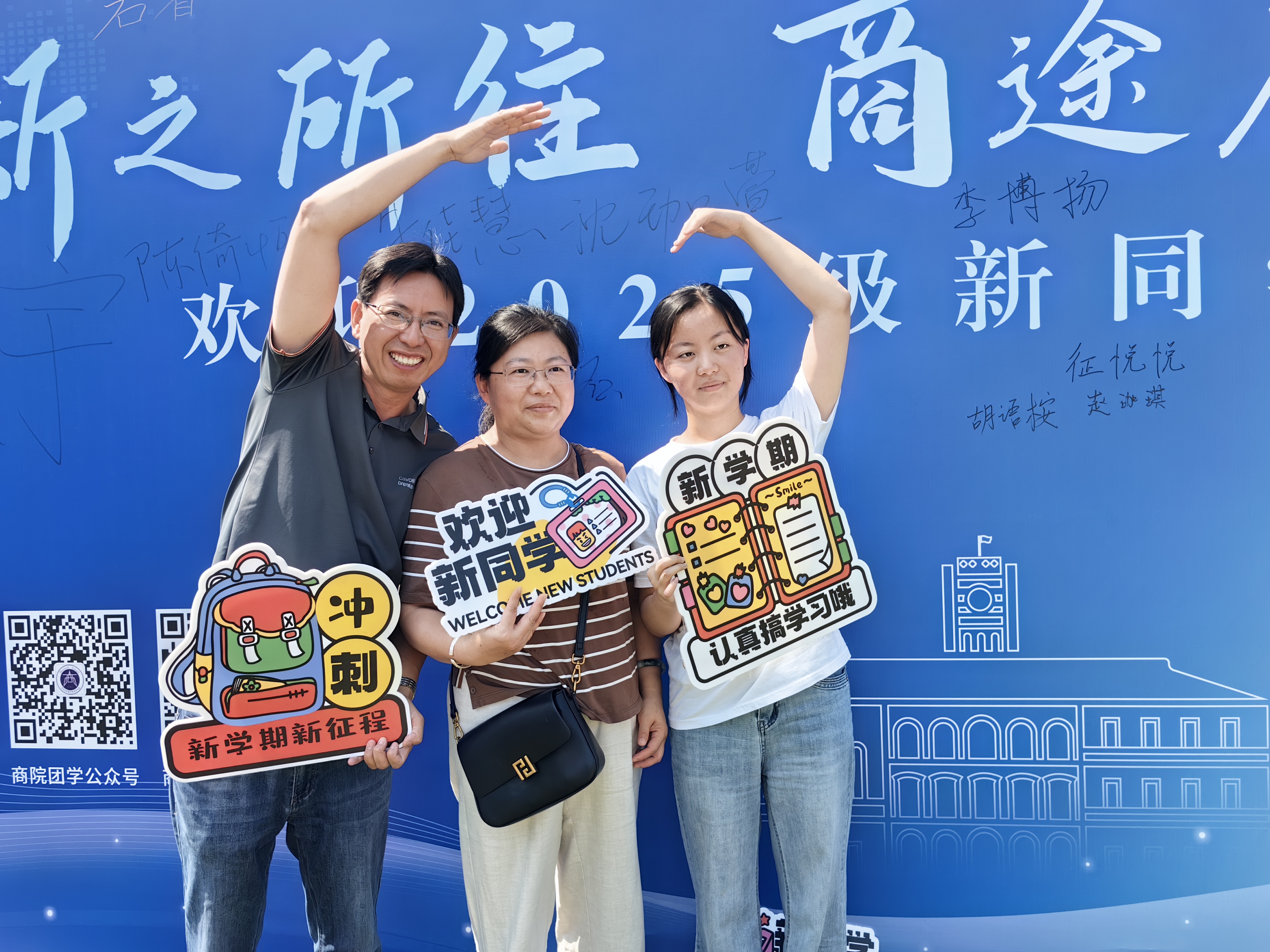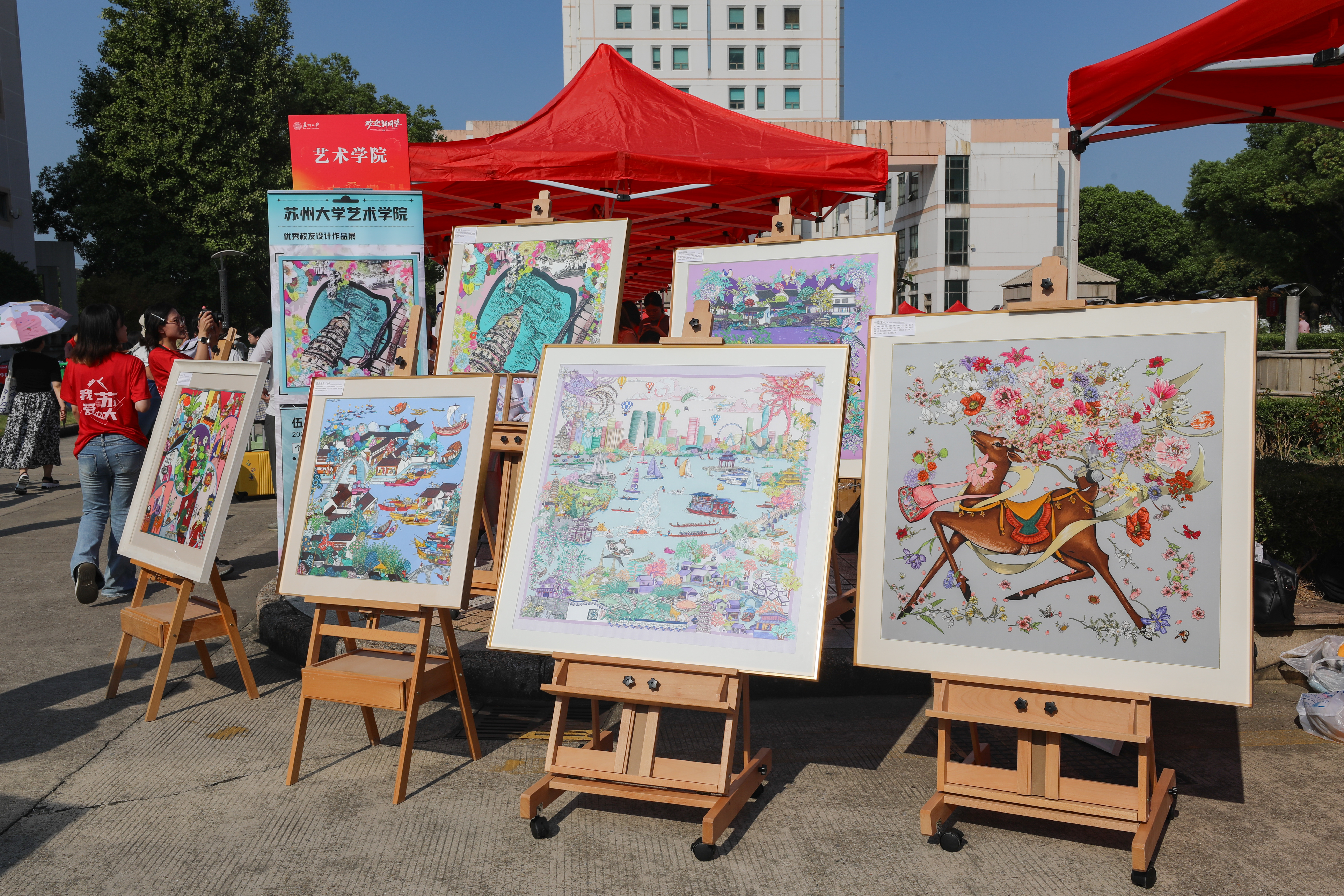 今年,艺术学院重回古城,近400名新同学在天赐庄校区北区报到。学院通过“艺”起绘古城互动墙、“艺”起碰个面笑脸墙、AI摄影生成古城打卡照片等多种方式迎接新生。其中,2025级博士新生伍雯婷的作品展,更是吸引了许多新生和家长的目光。