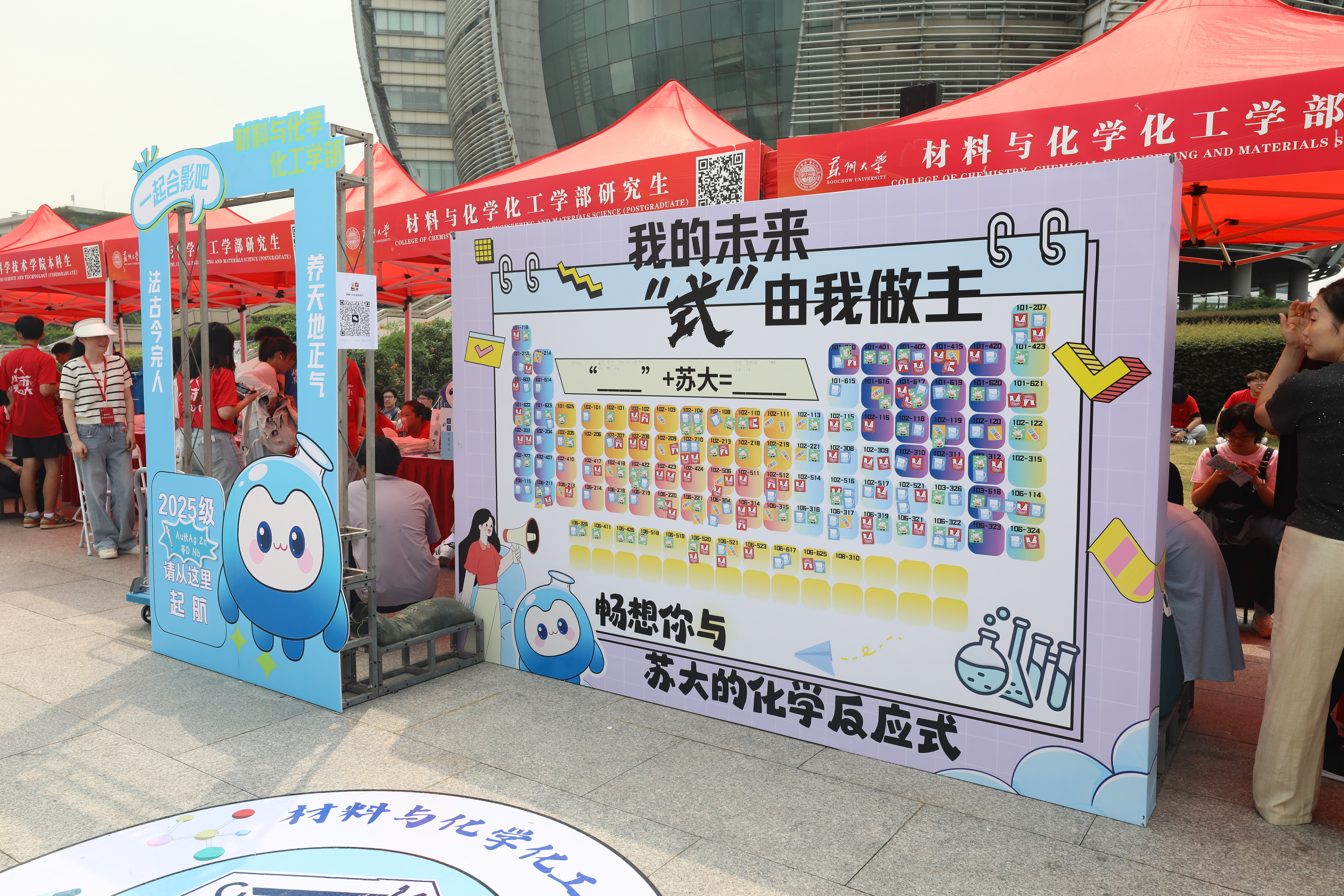 “元素周期表签到板”前,材料与化学化工学部的新生们在专属“元素格”中签名并写下化学反应式的创意答案,让我的未来“式”由我做主。