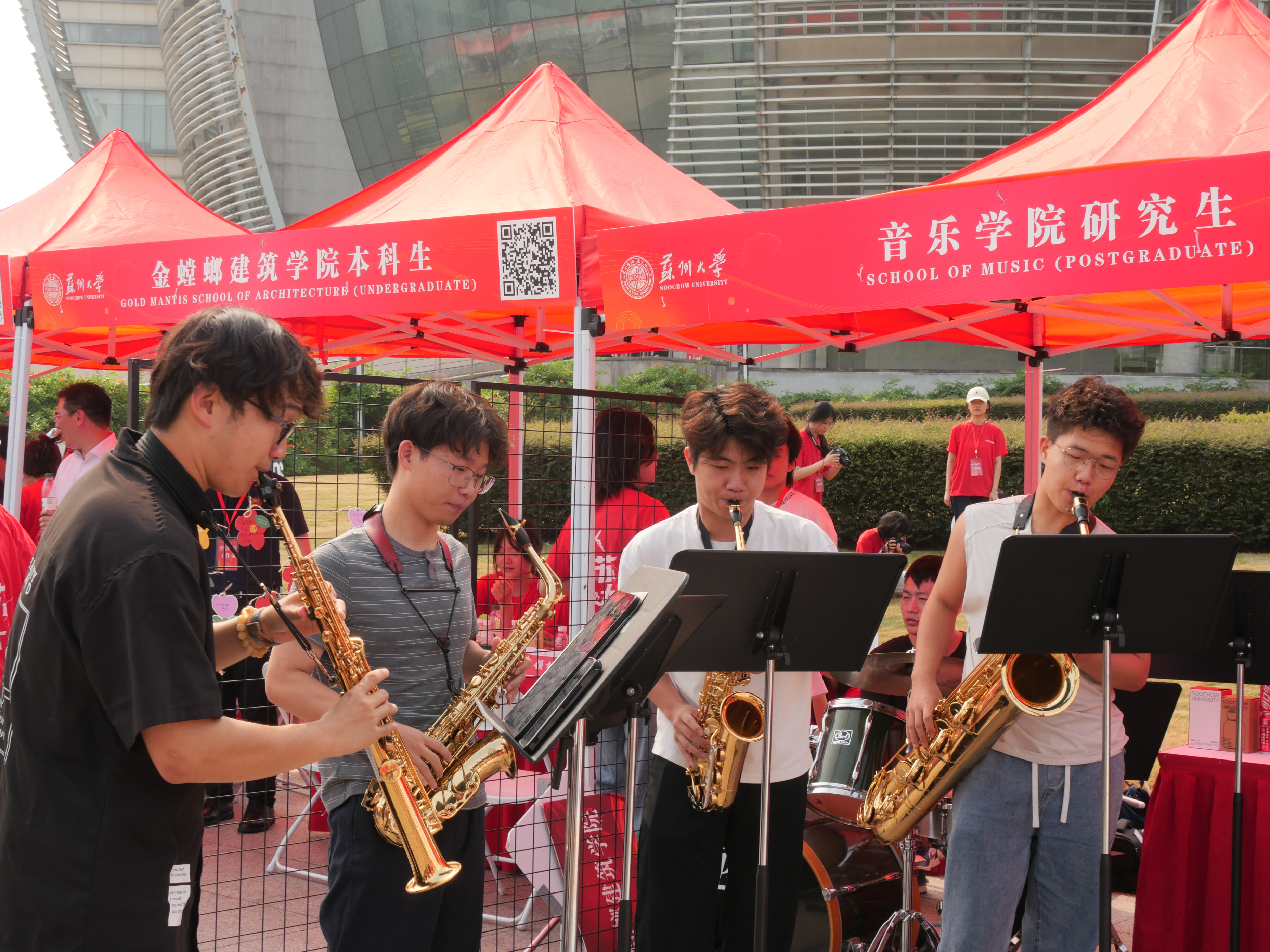 《东吴校歌》《青春礼赞》……无数个音符汇聚成一首首悠美的乐曲,音乐学院通过悠扬的旋律迎接新同学的到来。