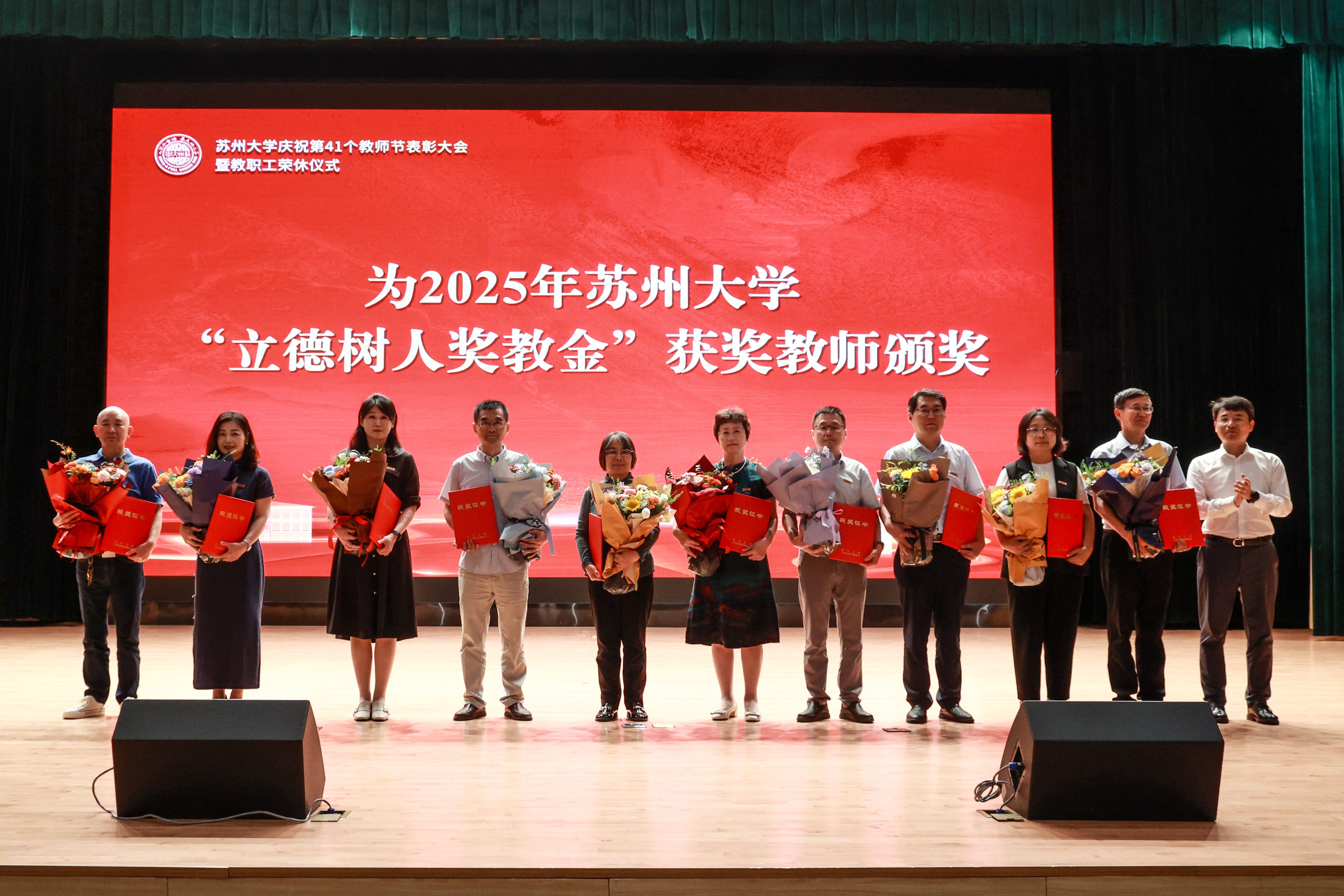 张桥为获得“立德树人奖教金”的教师颁奖。