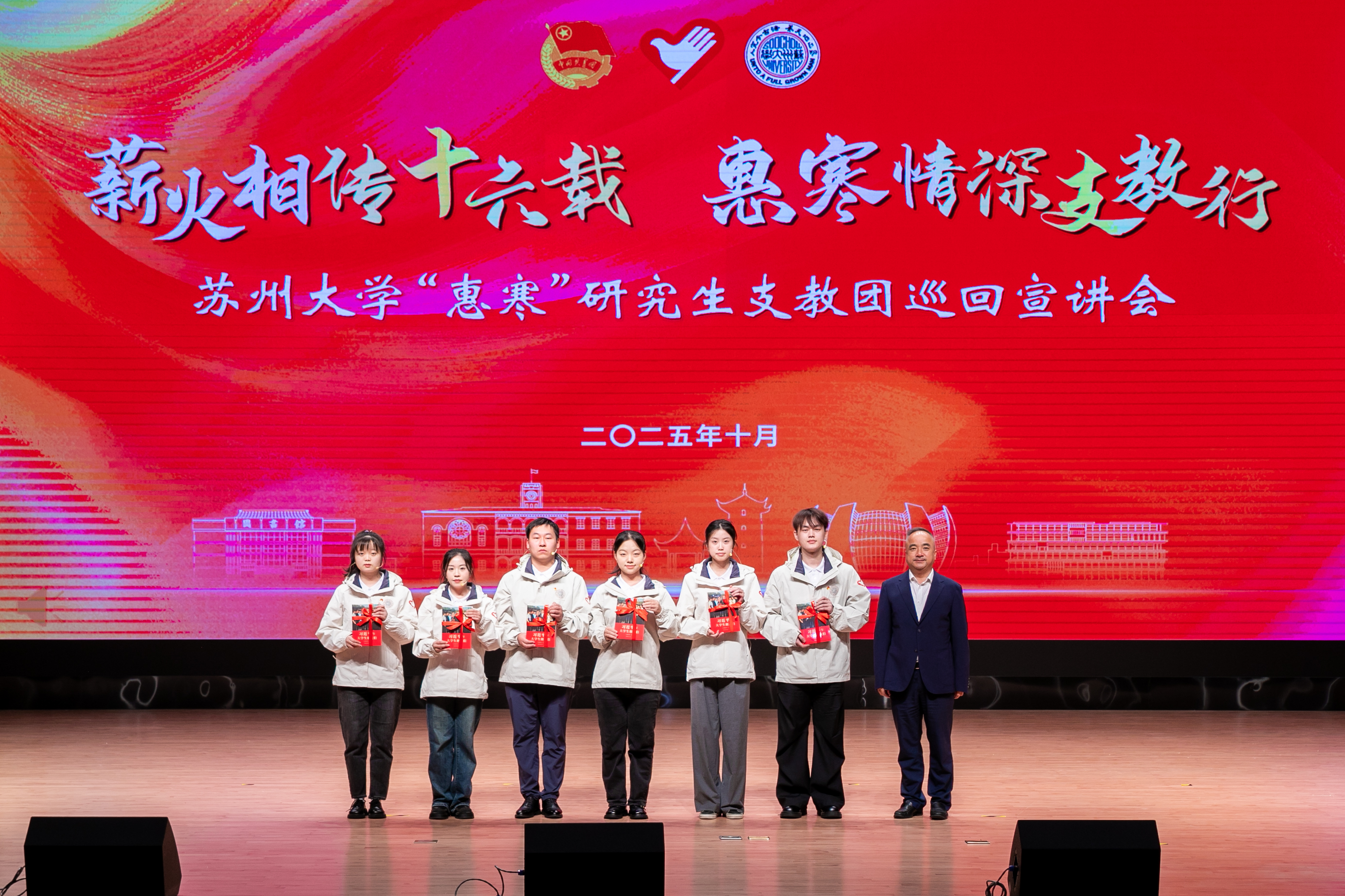 28届“惠寒”研支团成员代表登台朗诵《春风习习 惠寒花开》,声韵铿锵间传递支教初心,文辞隽永中诉说“惠寒”情怀。为进一步加强对“惠寒”青年志愿者的思想引领,查佐明为第28届“惠寒”研究生支教团成员代表赠送《习近平与大学生朋友们》第一、二卷,希望8868 SPORTS团员青年精读“有字之书”明事理,躬行“无字之书”长本领,以知行合一的坚定步履,书写属于8868体育(中国)官方网站学子的青春答卷。