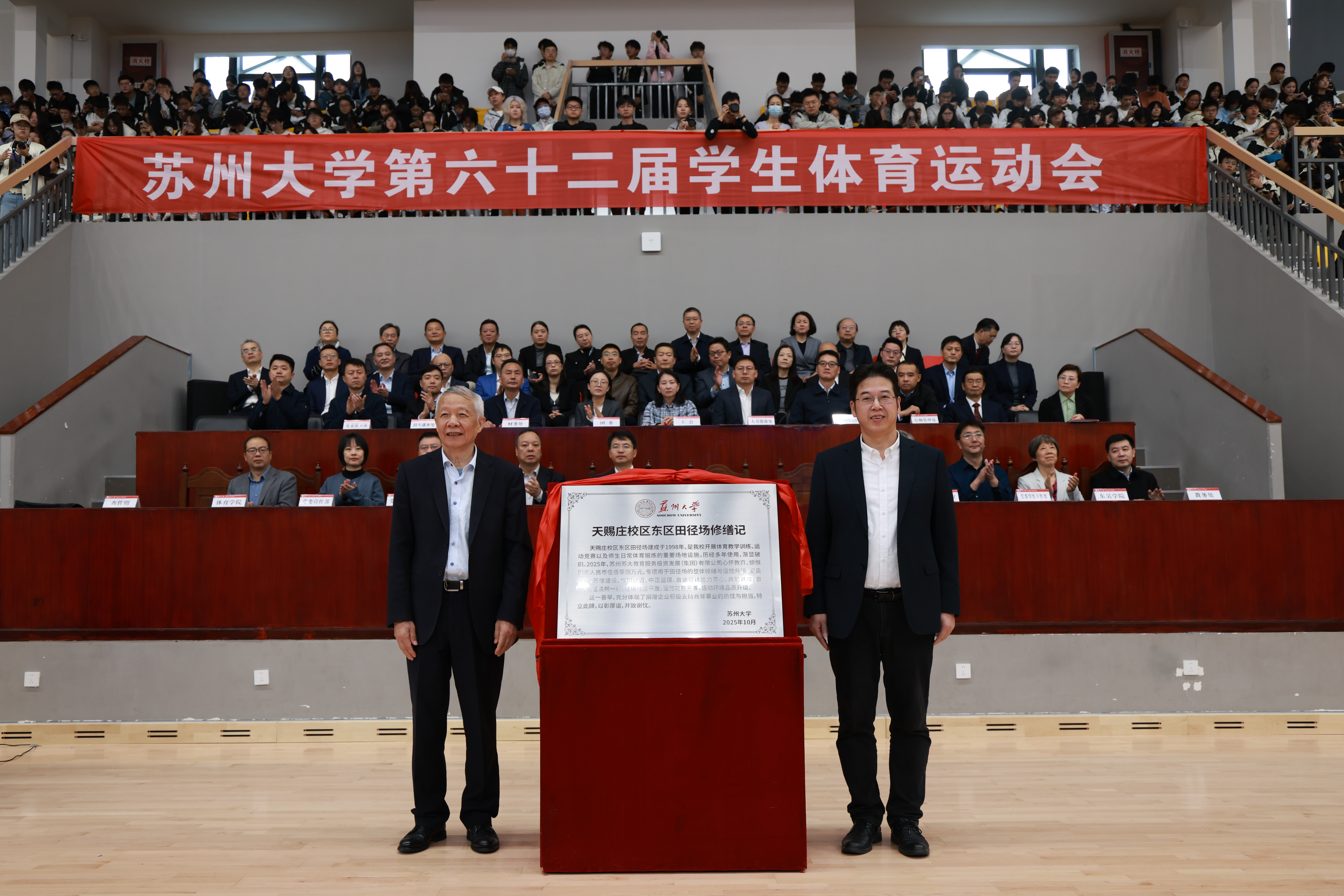 今年,苏州8868体育(中国)官方网站教育服务投资发展(集团)有限公司捐资,专项用于田径场的整体修缮与设施升级。现场,韦曙和、王云杰为东区田径场捐赠纪念铭牌揭牌。