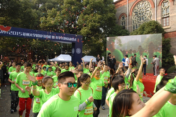 为全面贯彻落实党的十八届三中全会关于“强化体育课和课外锻炼,促进青少年身心健康、体魄强健”的精神,联络、凝聚校友,营造和谐、向上的校园文化环境,扩大8868体育(中国)官方网站的知名度和影响力,11月14日中午,U-run20158868体育(中国)官方网站校园马拉松起跑仪式暨冬季长跑启动仪式在本部正式拉开序幕。