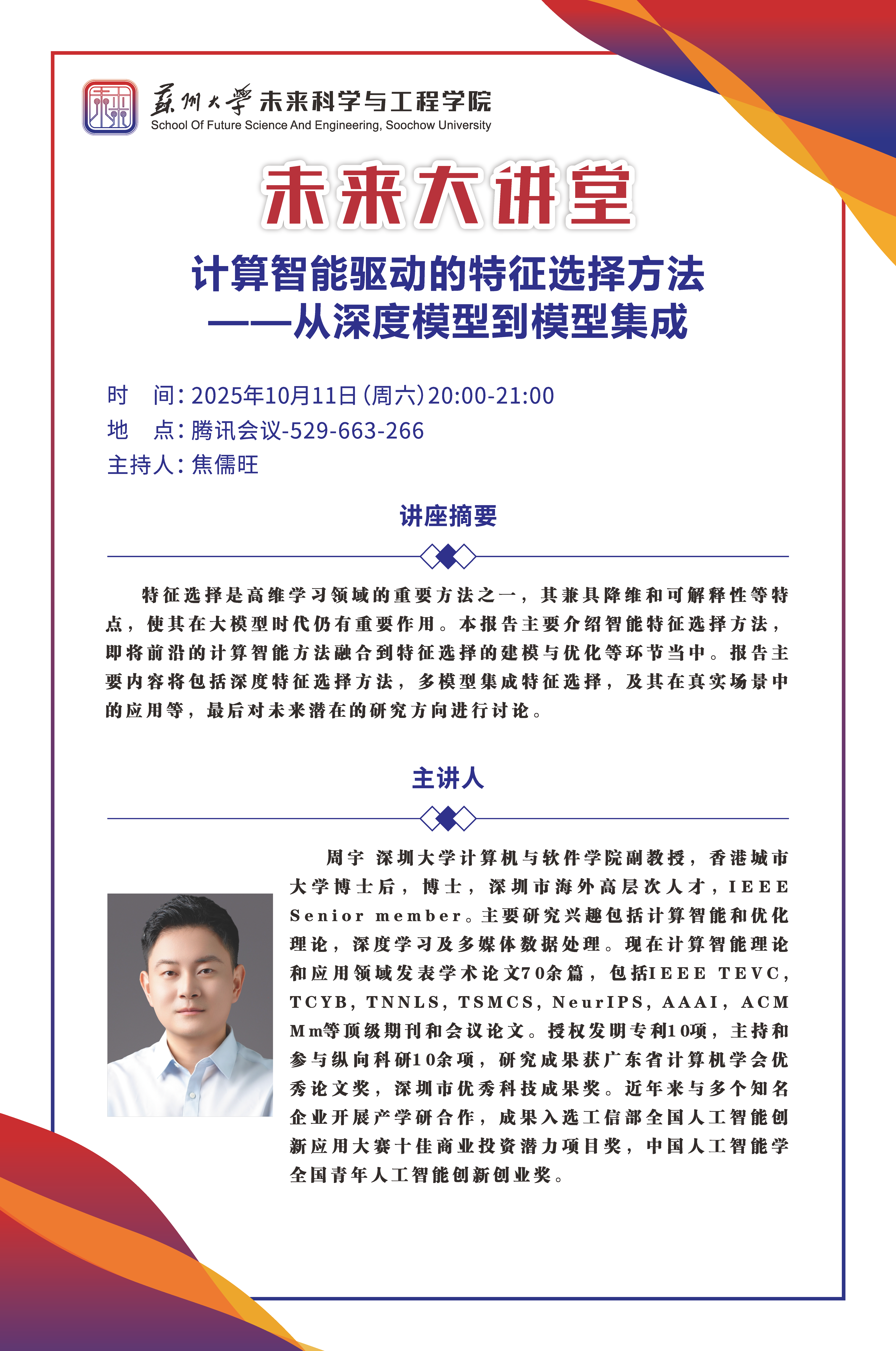未来科学与工程学院|未来大讲堂:计算智能驱动的特征选择方法——从深度模型到模型集成