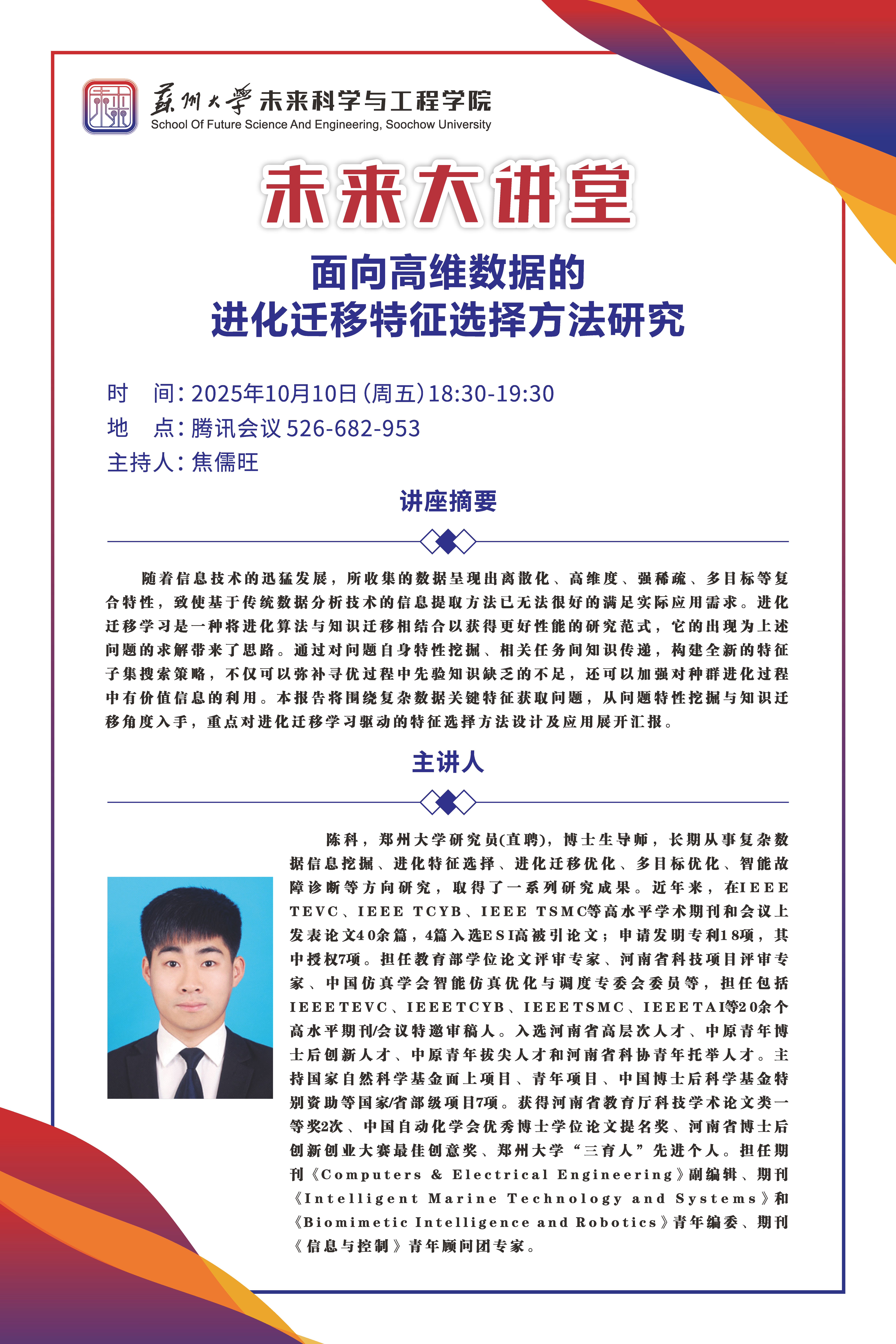 未来科学与工程学院|未来大讲堂:面向高维数据的进化迁移特征选择方法研究