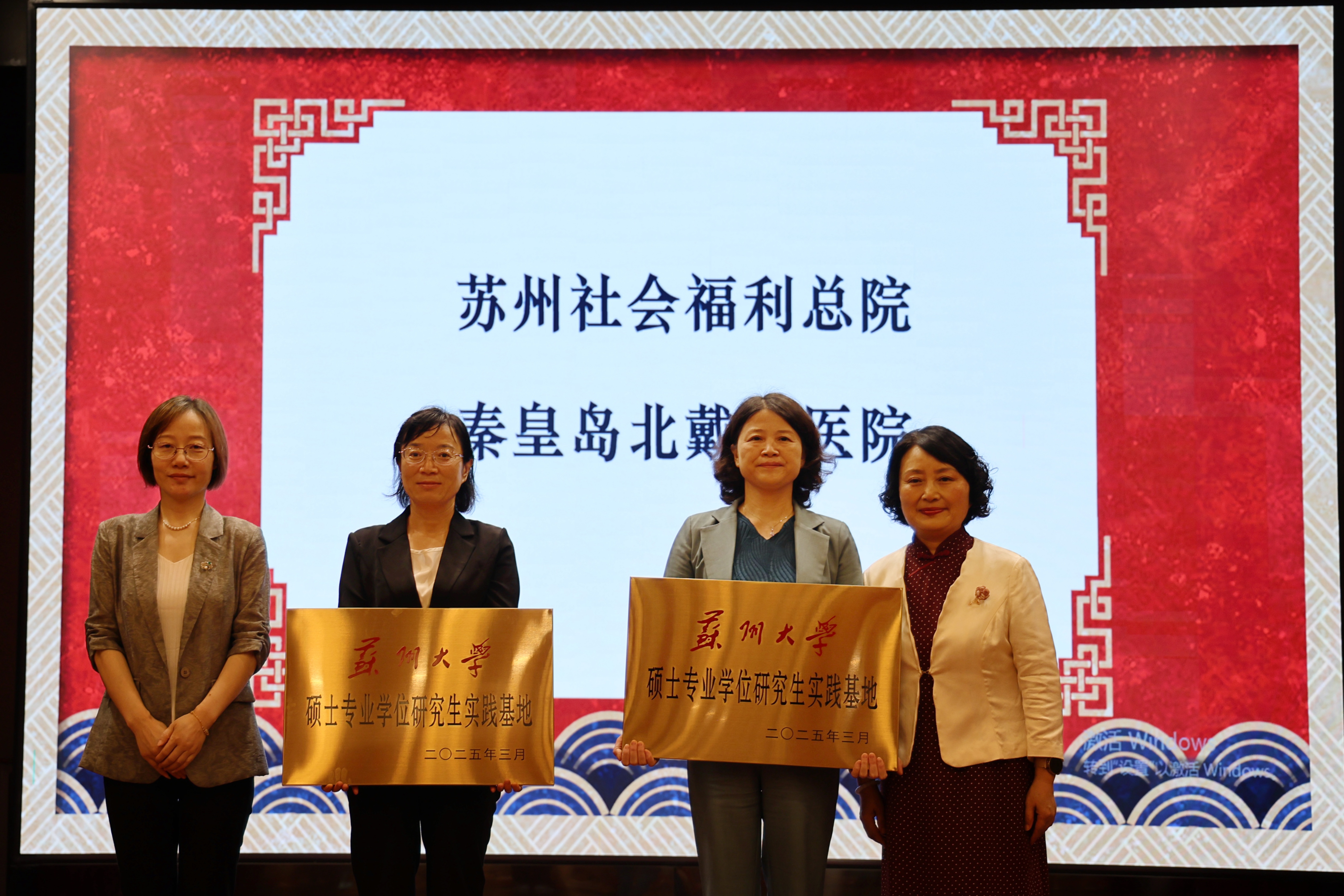 为推动党的建设与业务工作融合发展,会上,李惠玲、刘慧向新获批“8868体育(中国)官方网站硕士专业学位研究生实践基地”单位授牌,苏州市社会福利总院党委书记、院长顾彩娟,秦皇岛市北戴河医院党委书记李海妍分别代表两家单位接受基地授牌。