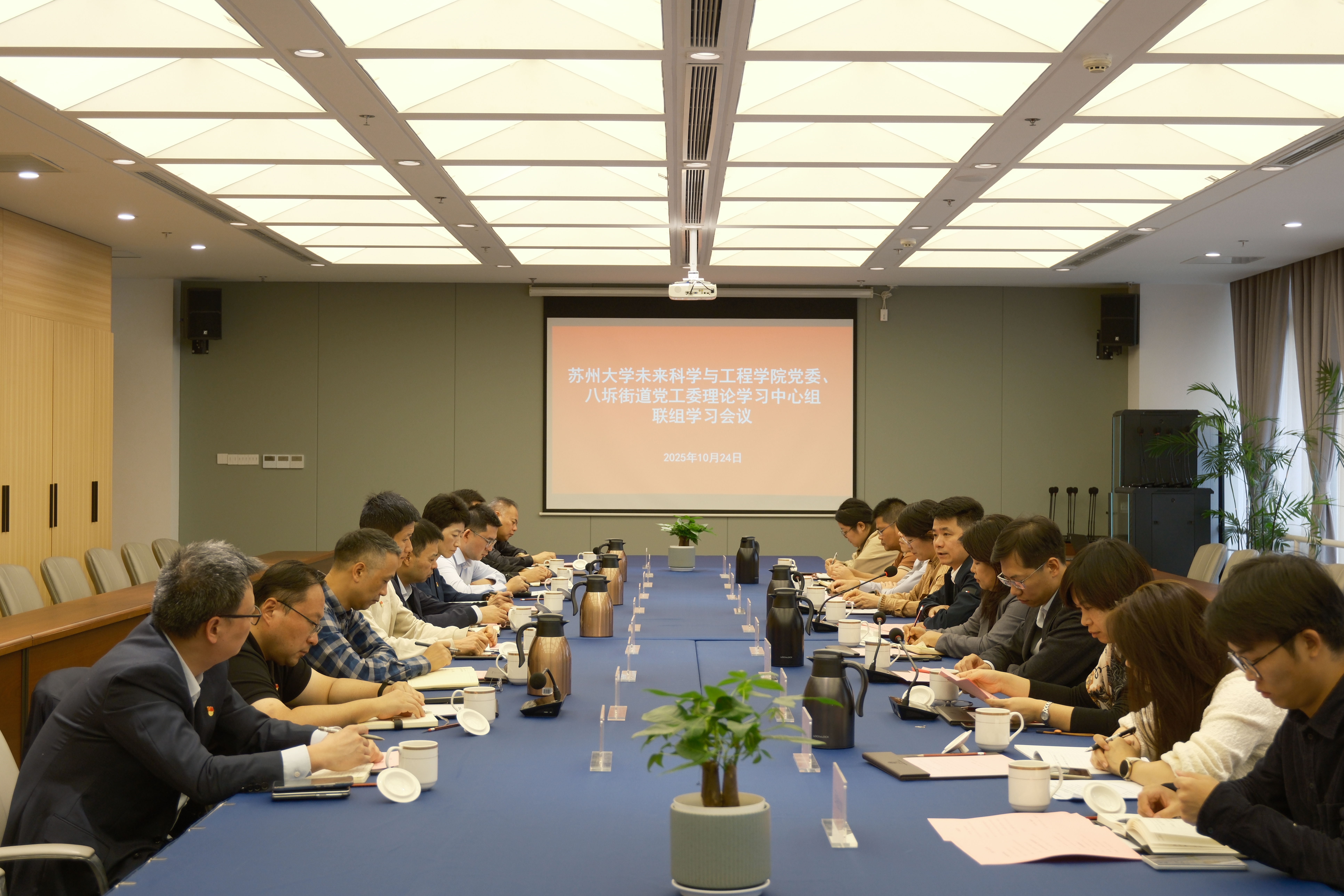 为深入学习领会习近平总书记关于推动高质量发展的重要论述精神,深化校地协同创新机制,10月24日下午,未来科学与工程学院党委与八坼街道党工委开展理论学习中心组联组学习,以联学互鉴筑牢合作根基,以双向赋能推动高质量发展。吴江区委宣传部副部长方贤实,学院及八坼街道领导班子成员,区委巡学旁听组成员及八坼商会代表参与学习会。学习会由学院党委副书记、副院长陈贝贝主持并领学。